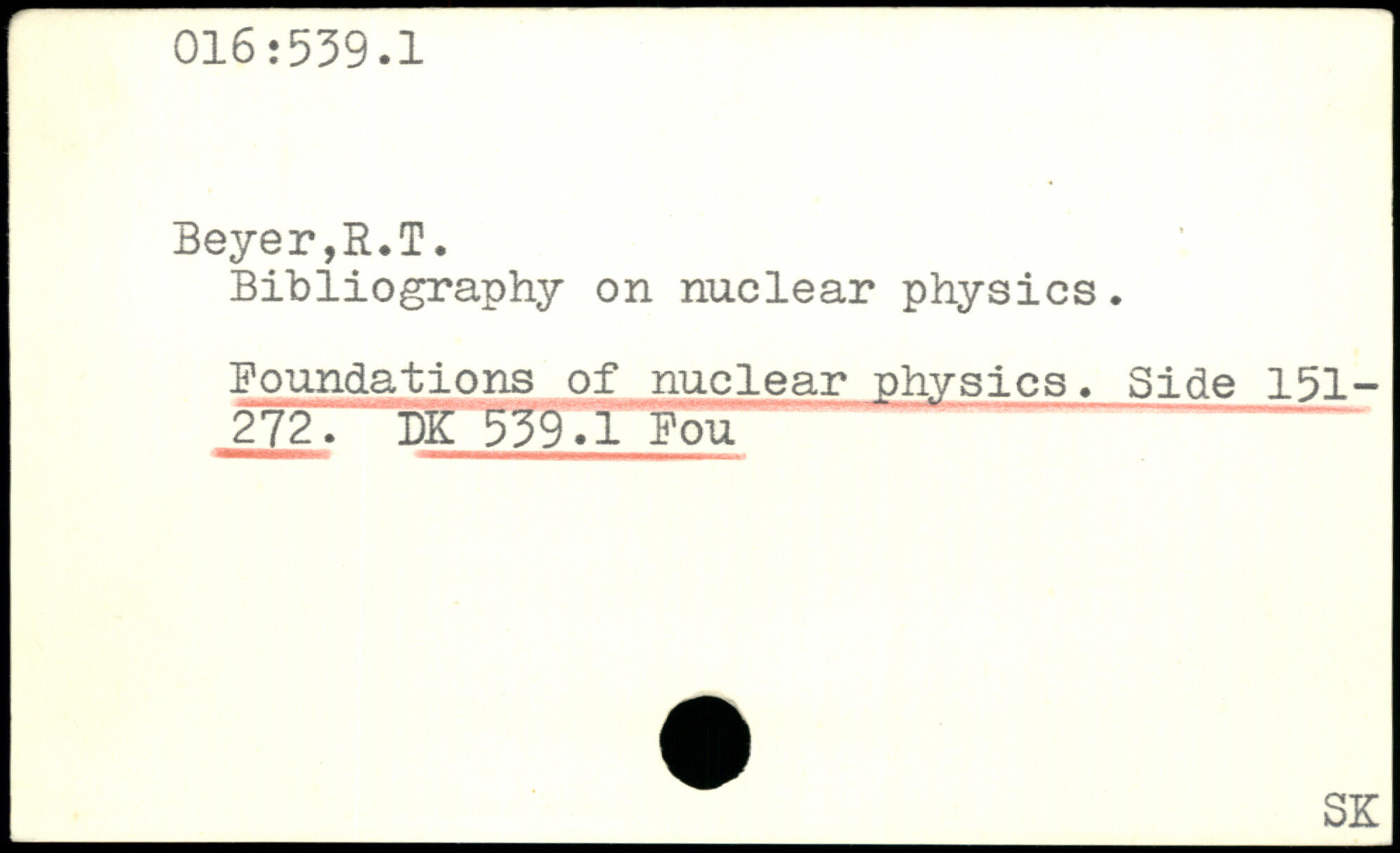 Bibliography on nuclear physics. Foundations of nuclear physics. Side 151-272. DK 539.1 Fou