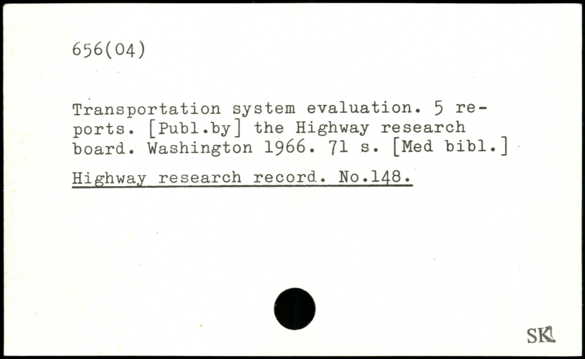 Transportation system evaluation. 5 reports.