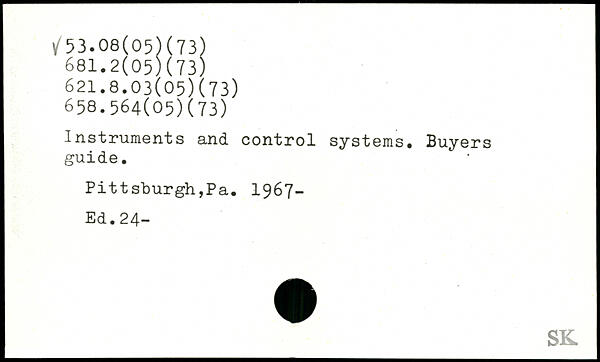 Instruments and control systems. Buyers guide. Pittsburgh,Pa. 1967- Ed.24-