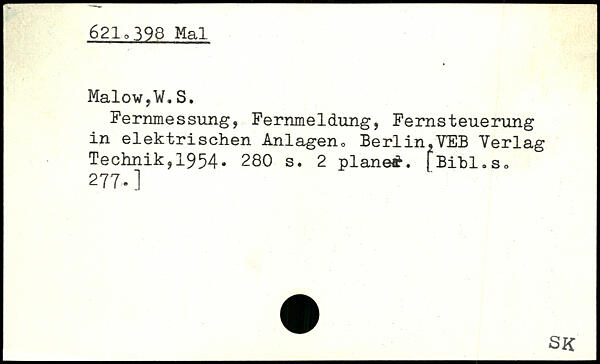 Fernmessung, Fernmeldung, Fernsteuerung in elektrischen Anlagen. Berlin.VEB Verlag Technik,1954.