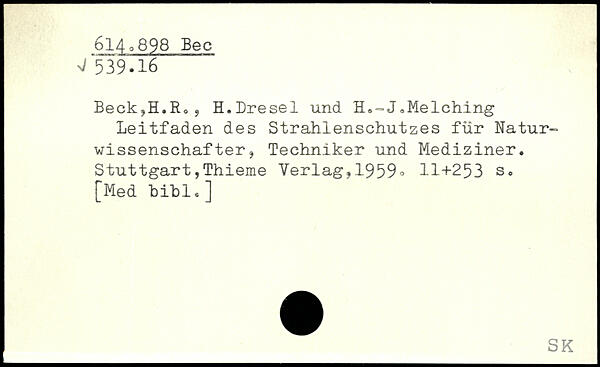 Beck,H.R0 , H.Dresel und H.-= J.Melching Leitfaden des Strahlenschutzes für Naturwissenschafter, Techniker und Mediziner.