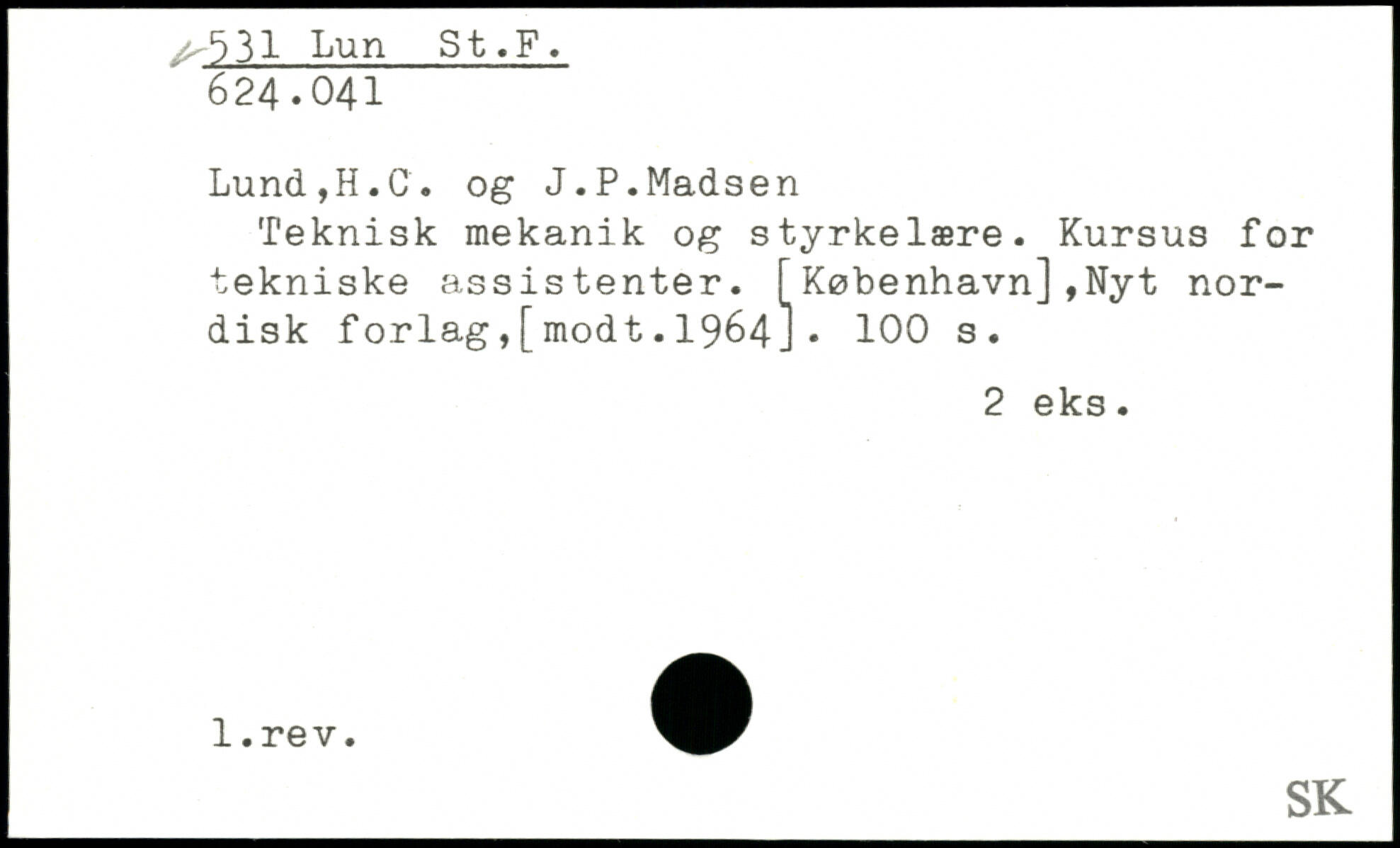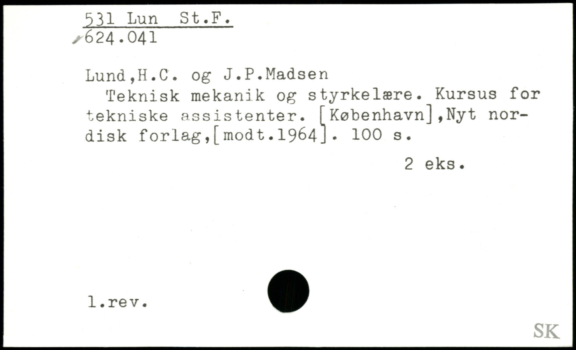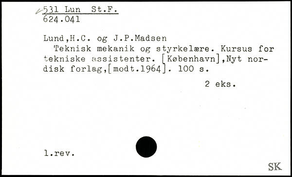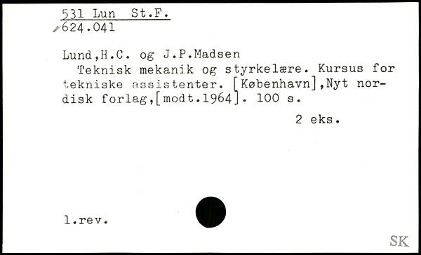 Teknisk mekanik og styrkelære. Kursus for tekniske assistenter.