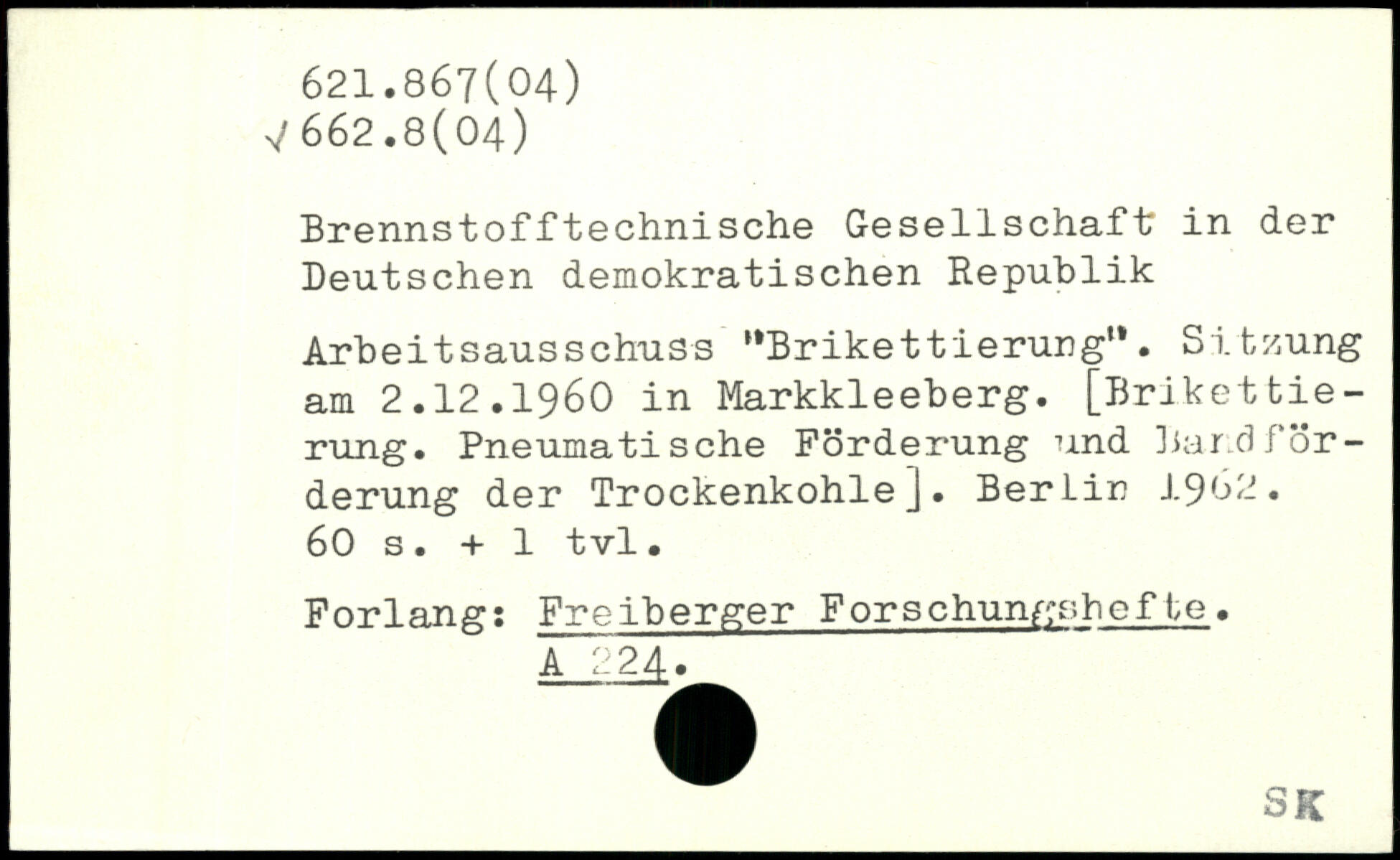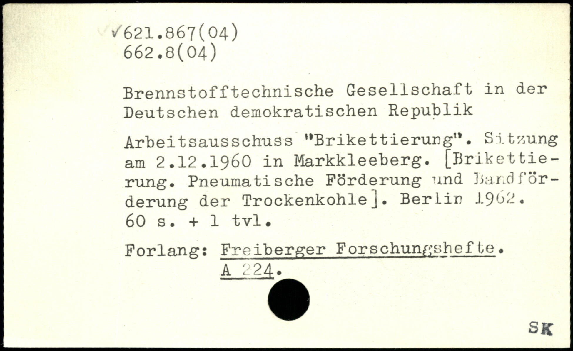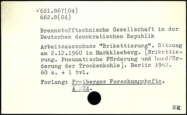 Brennstofftechnische Gesellschaft in der Deutschen demokratischen Republik Arbeitsausschuss “Brikettierung". Sitzung am 2.I2.1960 in Markkleeberg. [Brikettierung. Pneumatische Förderung und Bandförderung der Trockenkohle]. BerLin 1982.