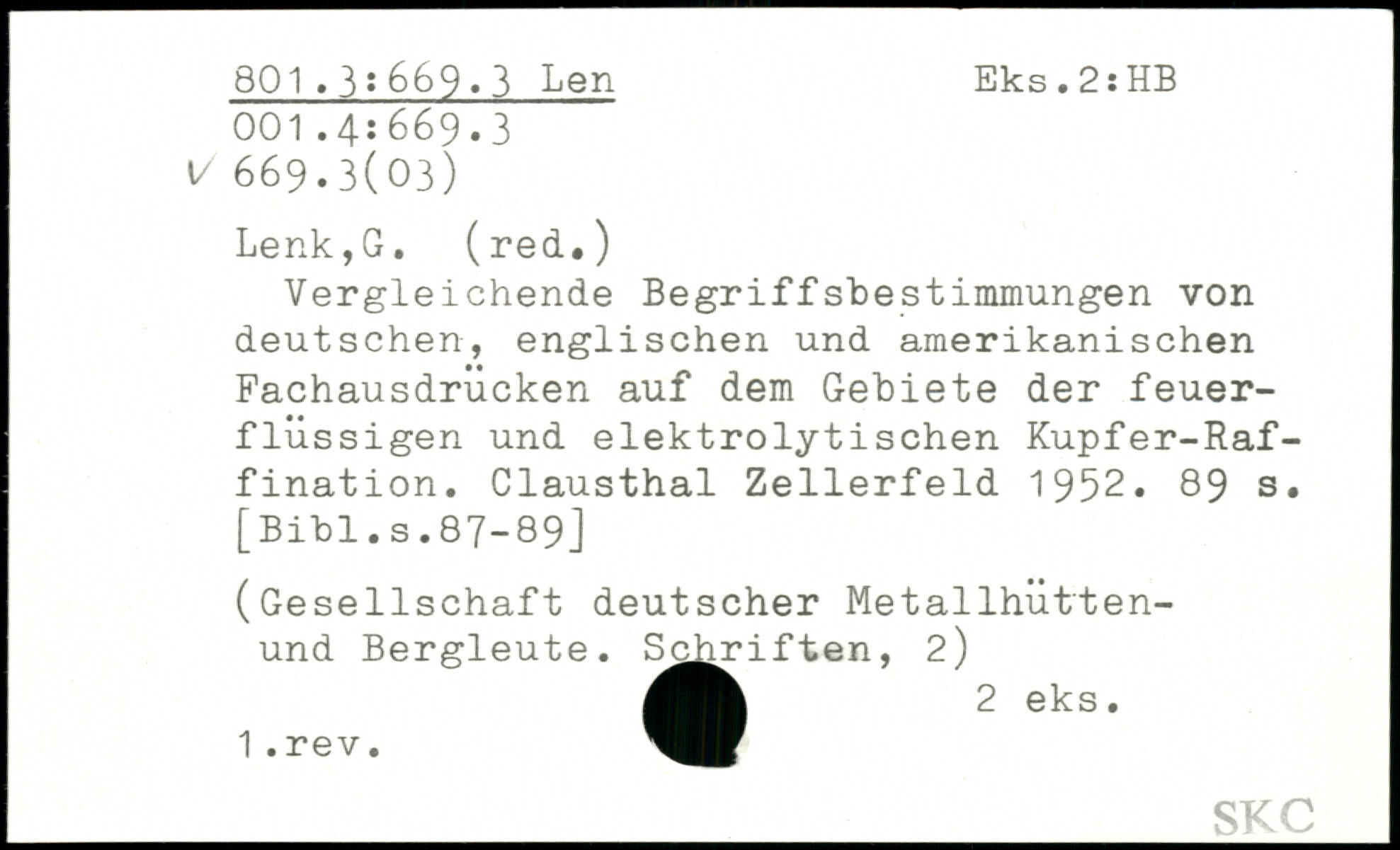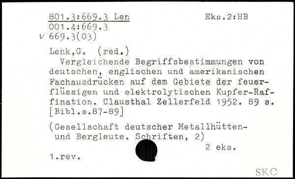 Vergleichende BegriffsbeStimmungen von deutschen, englischen und amerikanischen Fachausdrücken auf dem Gebiete der feuerflüssigen und elektrolytischen Kupfer-Raffination. Clausthal Zellerfeld 1952.