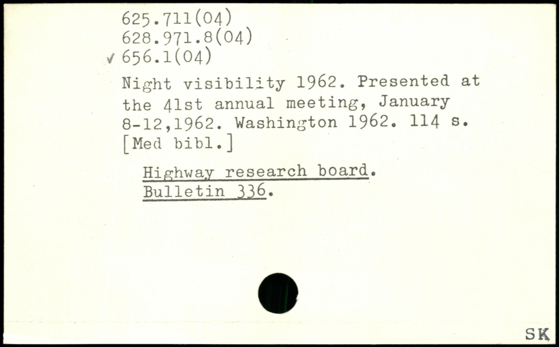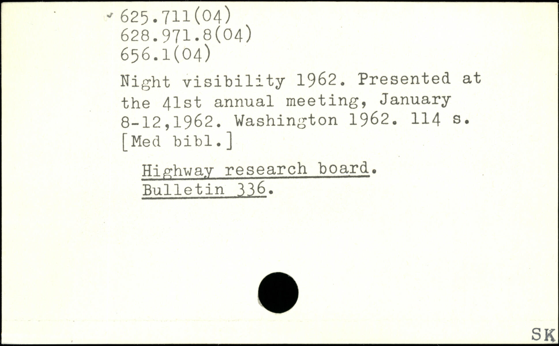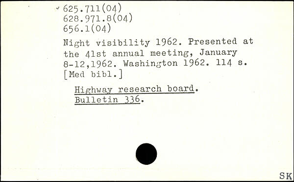Night visibility 1962. Presented at the 41st annual meeting, January 8-12,1962.
