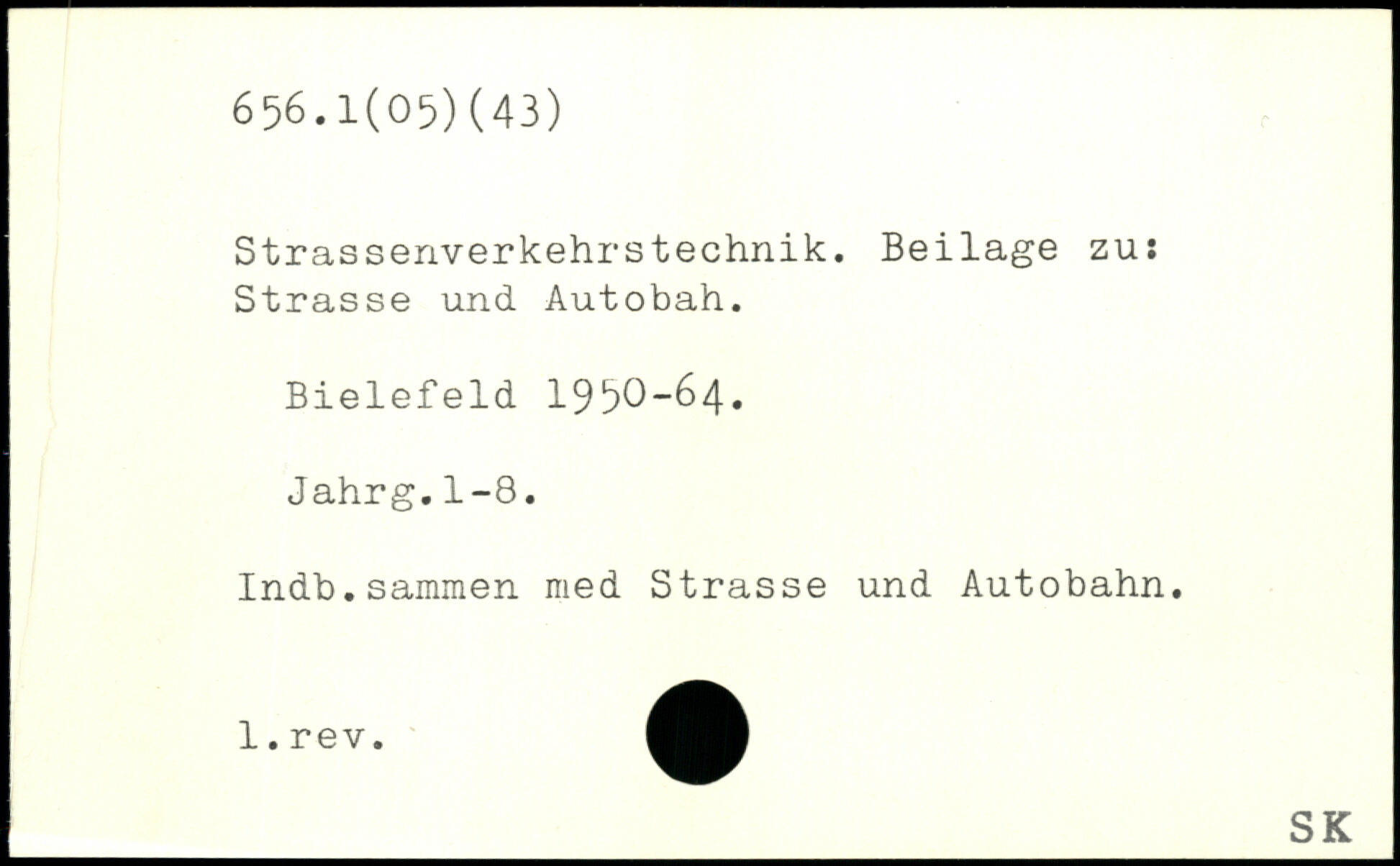 Strassenverkehrstechnik. Beilage zu: Strasse und Autobah. Bielefeld 1950-64. Jahrg.1-8. Indb.sammen med Strasse und Autobahn. _