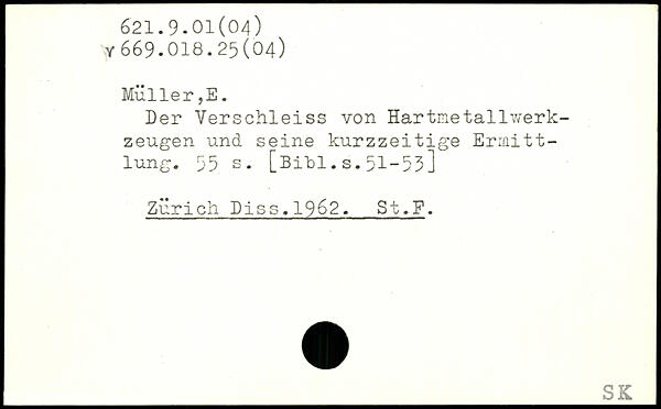 Der Verschleiss von Hartmetallwerk-zeugen und seine kurzzeitige Ermittlung.