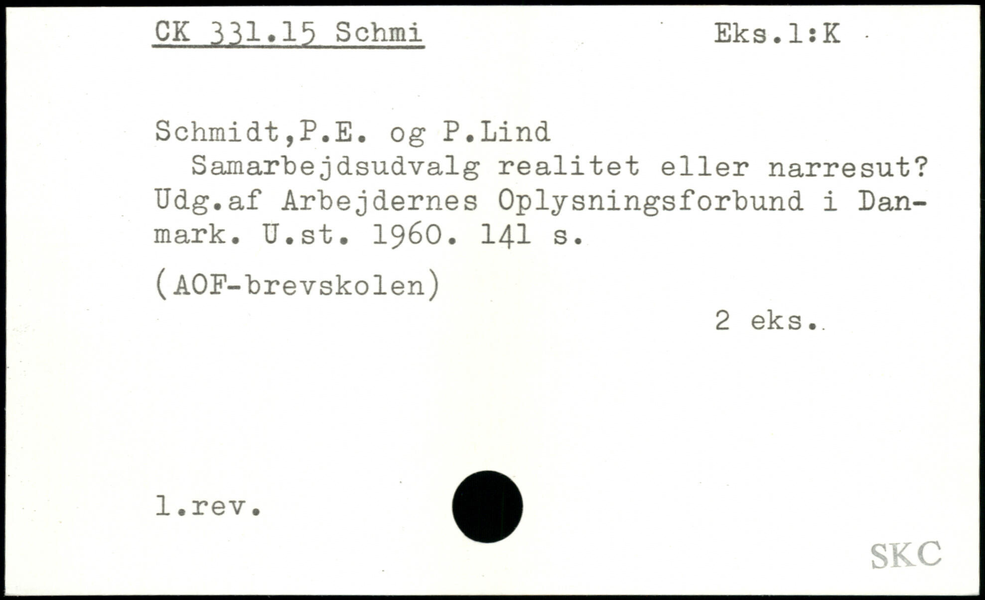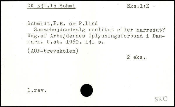 Samarbejdsudvalg realitet eller narresut? Udg.af Arbejdernes Oplysningsforbund i Danmark. U.st. 1960.