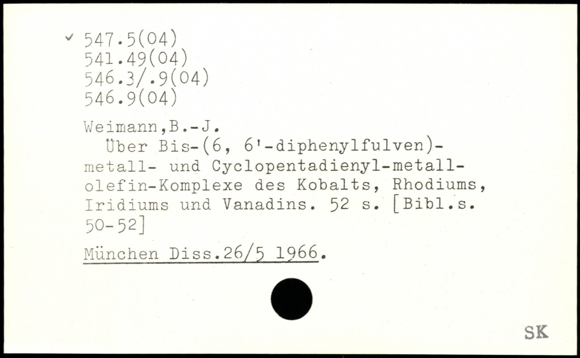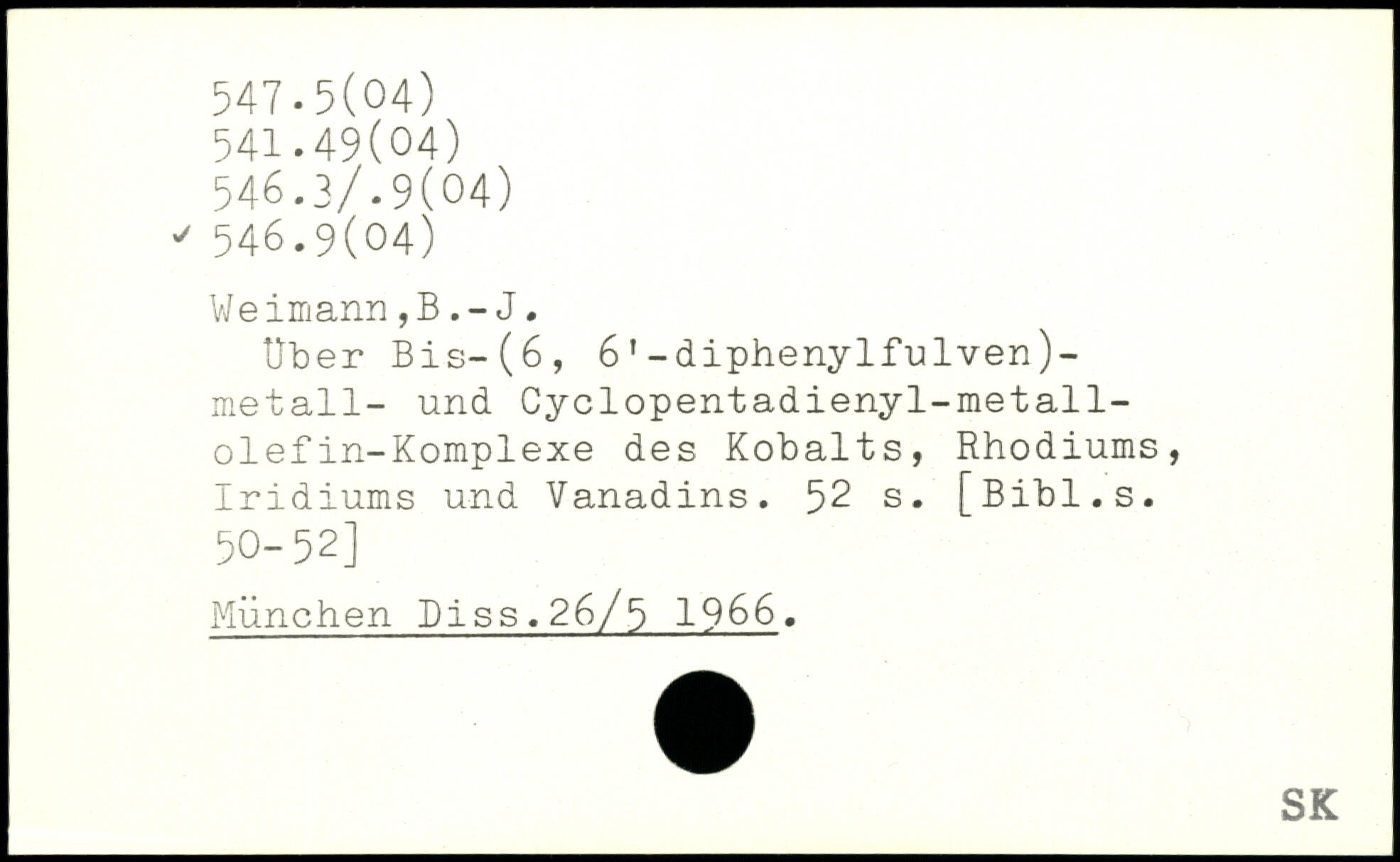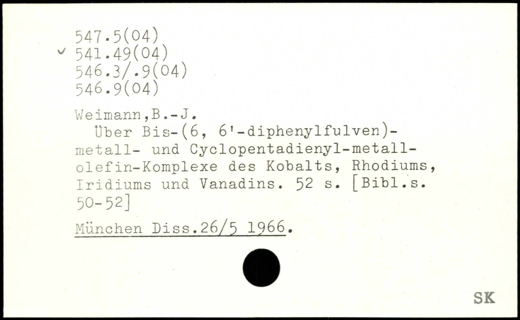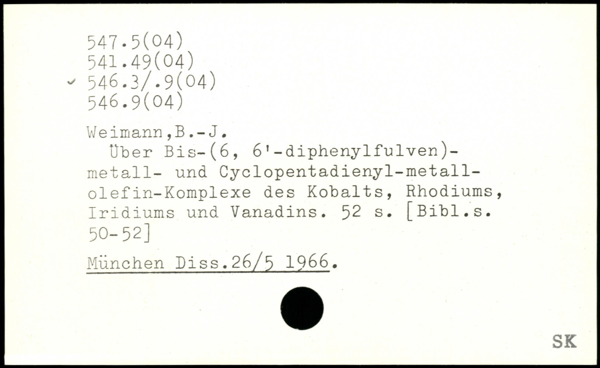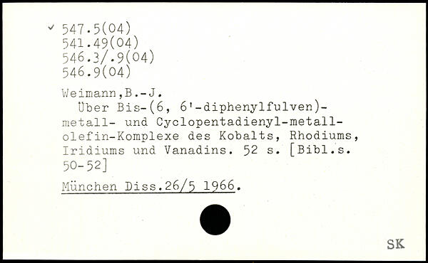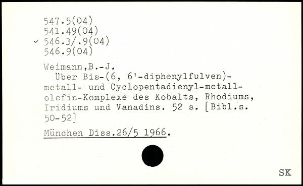 Weimann,BJ. Über Bis-(6, 61-diphenylfulven)-metall- und Cyclopentadienyl-metall-olefin-Komplexe des Kobalts, Rhodiums, Iridiums und Vanadins.