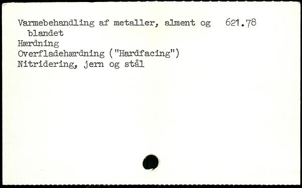 Varmeb ehandling af metaller, alment og 621. 'jQ blandet Hærdning Overfladehærdning ("Hardfacing") Nitridering, jern og stål