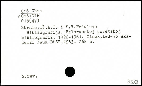 Bibliografija. Belorusskoj sovetskoj bibliografii, 1922-1961. Minsk,Izd-vo Akademii Nauk BSSR,19&3.