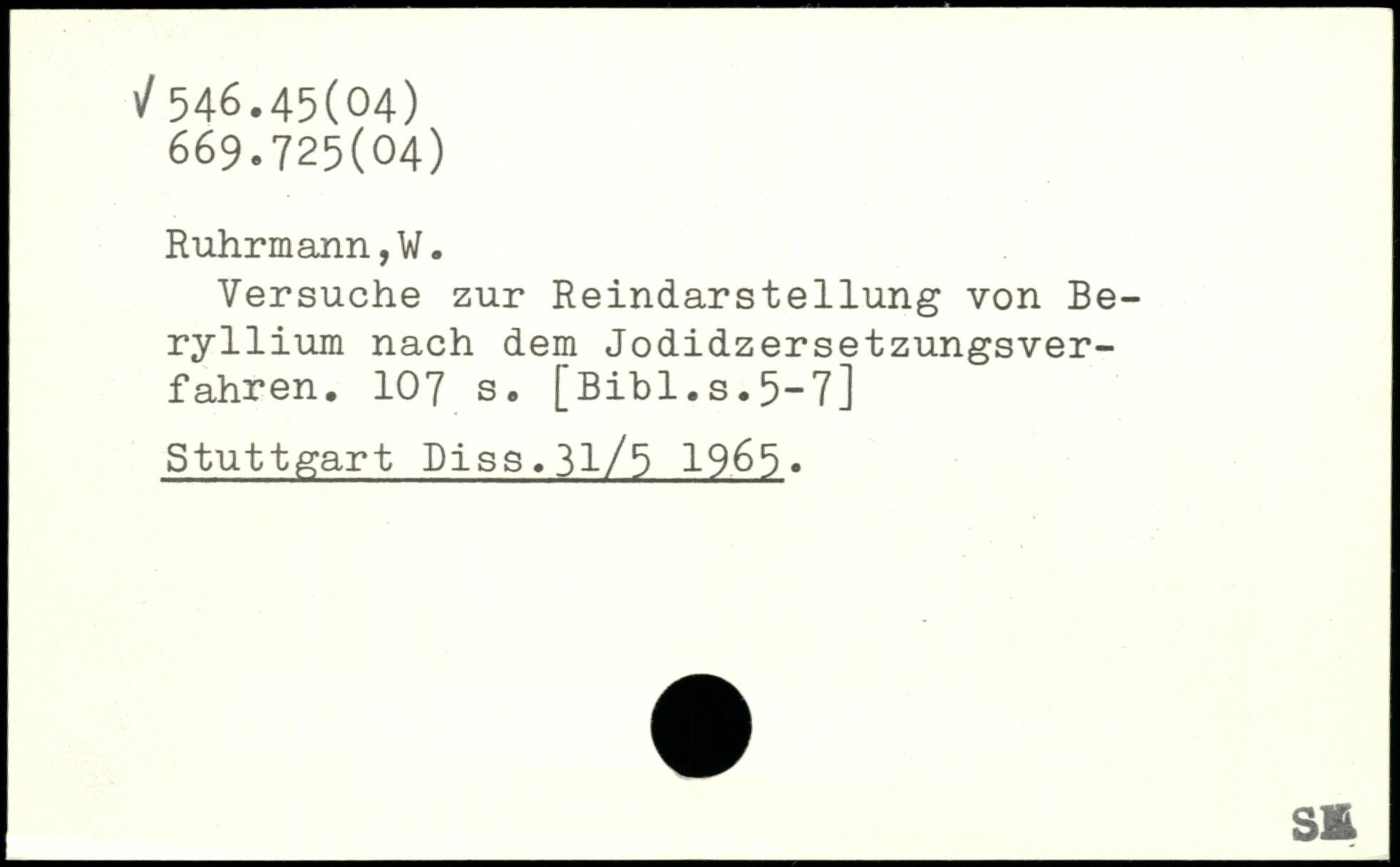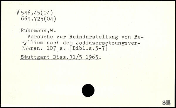 Versuche zur Reindarstellung von Beryllium nach dem Jodidzersetzungsverfahren.