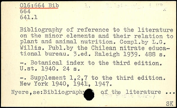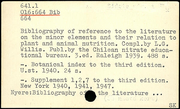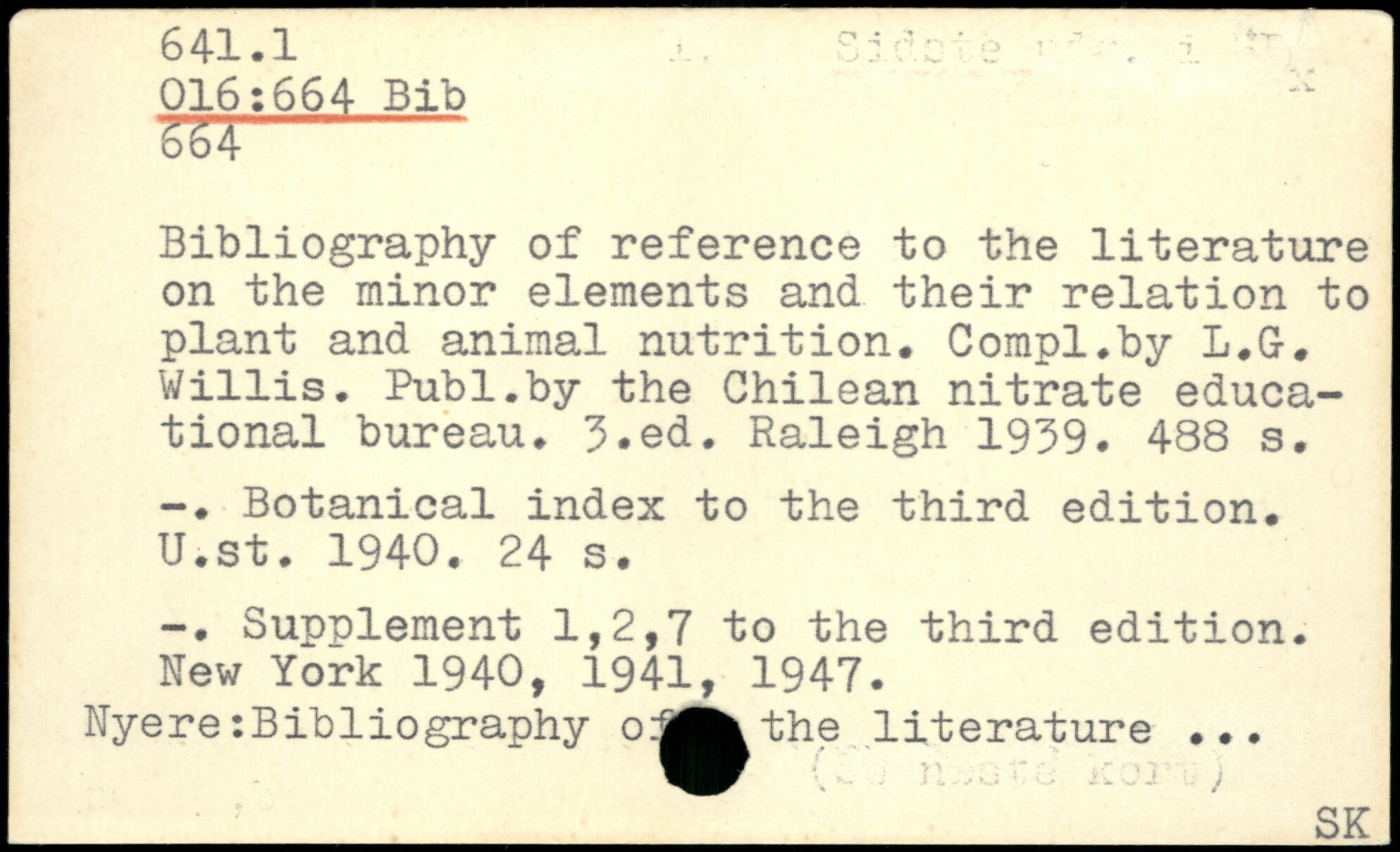Bibliography of reference to the literature on the minor elements and their relation to plant and animal nutrition. Compl.by L.G. W1111s.