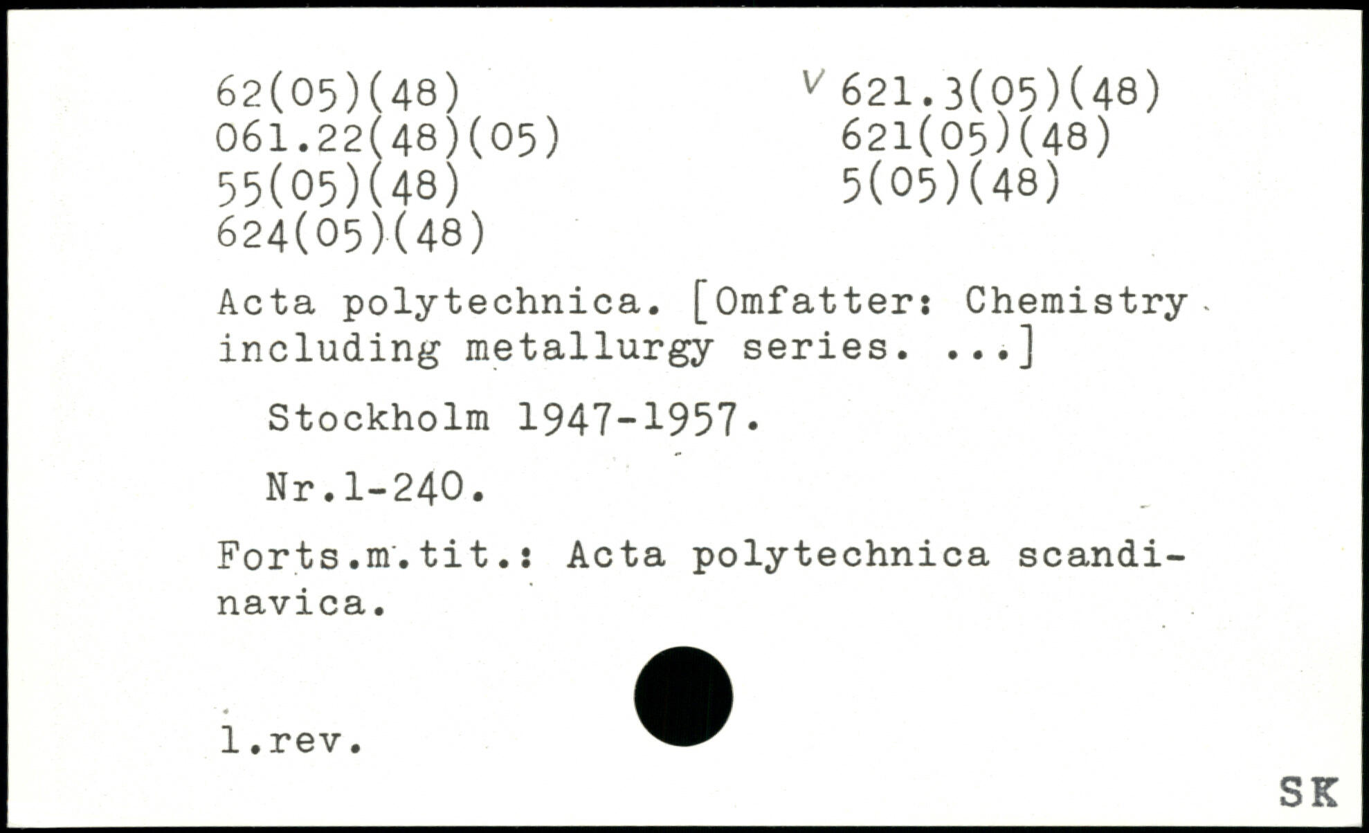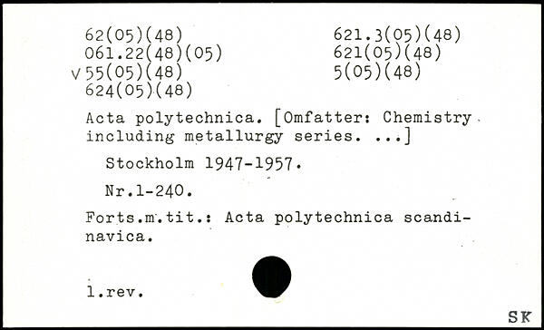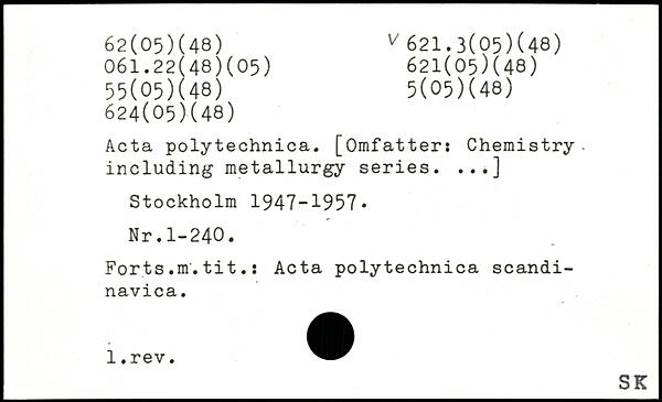 Acta polytechnica. [Omfatteri Chemistry, including metallurgy series. ...]