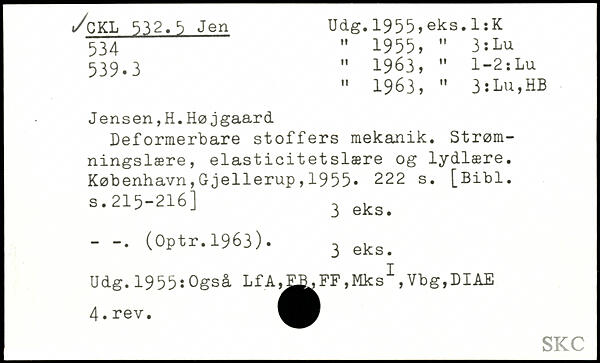 " 1963, ” 31 Lu,HB Jensen,H.Højgaard Deformerbare stoffers mekanik. Strømningslære, elasticitetslære og lydlære.