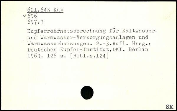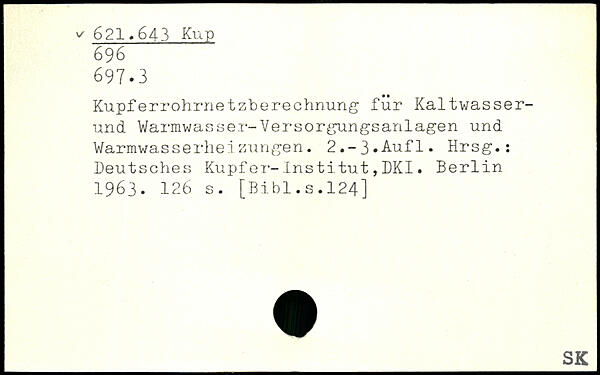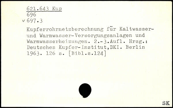 Kupferrohrnetzberechnung für Kaltwasser-und Warmwasser-Versorgungsanlagen und Warmwasserheizungen. 2.-