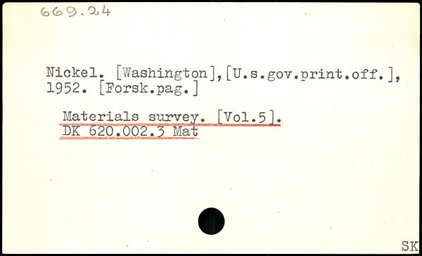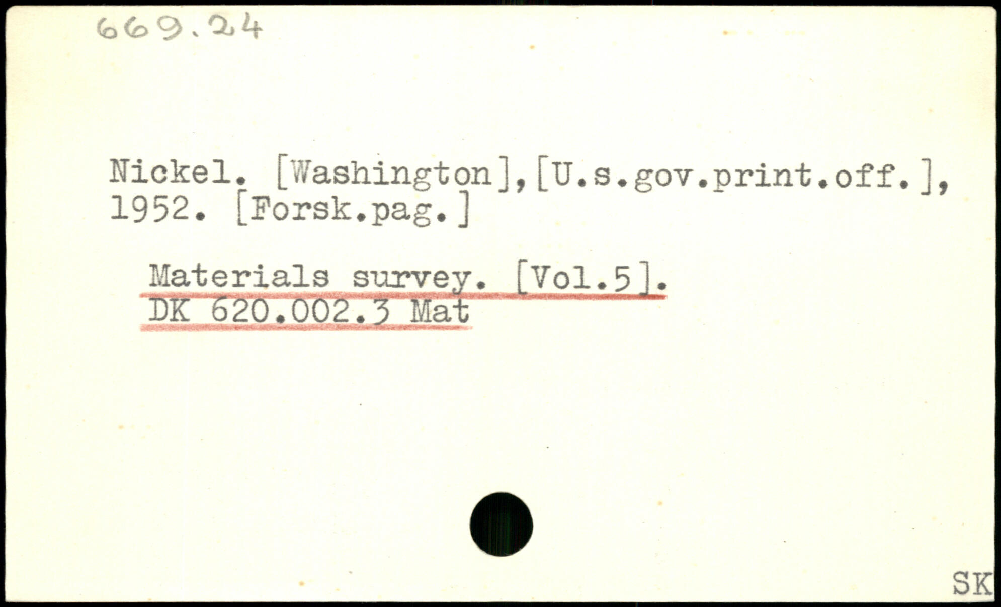 Nickel. [Washington],[U.s.gov.print.off.], 1952. [Forsk.pag.] Materials survey. [Vol. 5 "I.