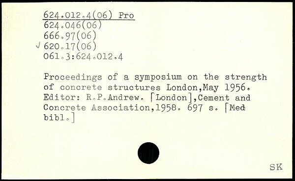 Proceedings of a symposium on the strength of concrete structures London,May 1956, Editor: RoPoAndrew. [London],Cement and Concrete Association, 1958