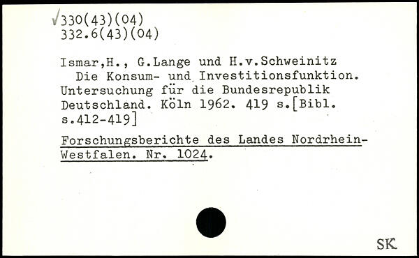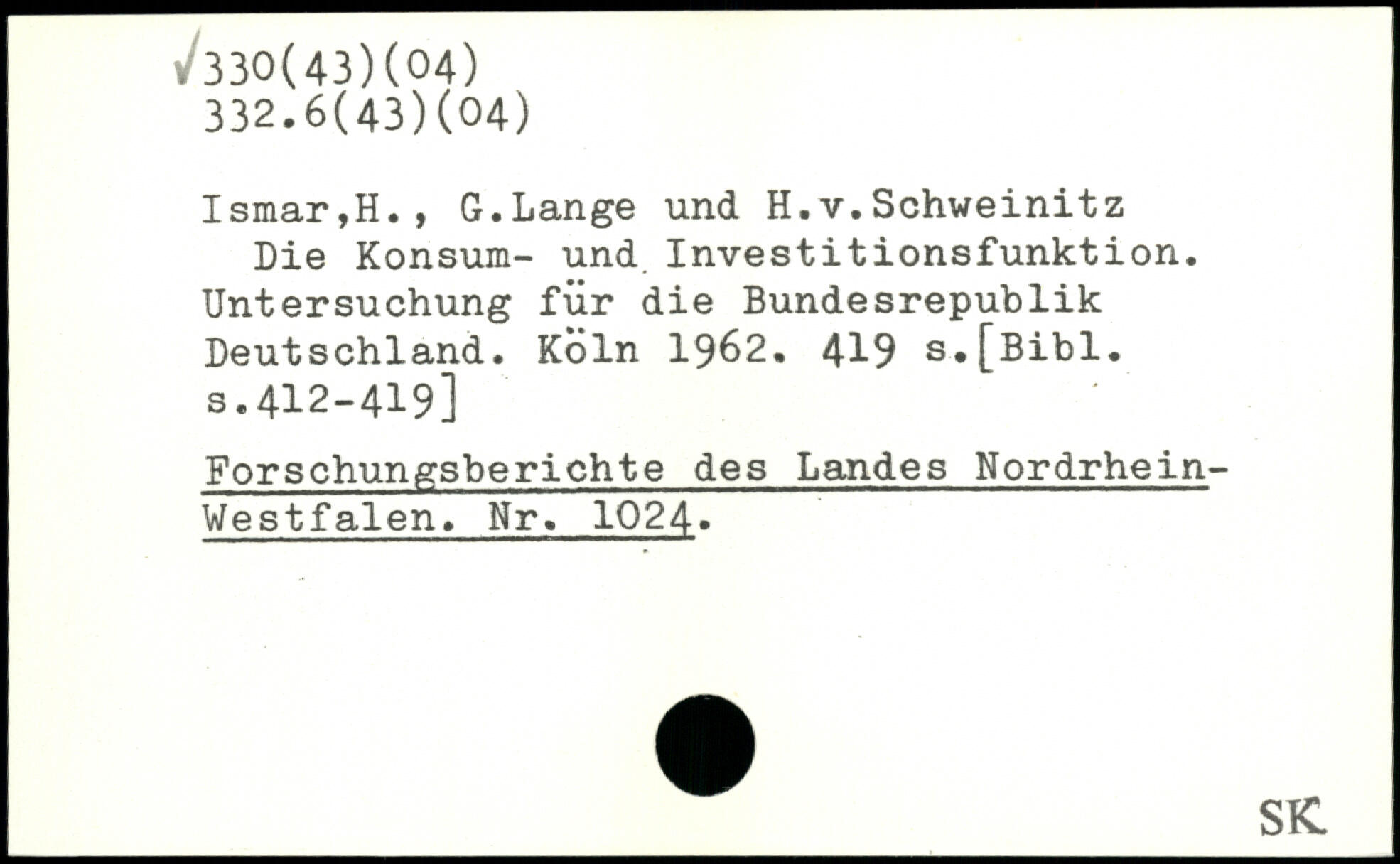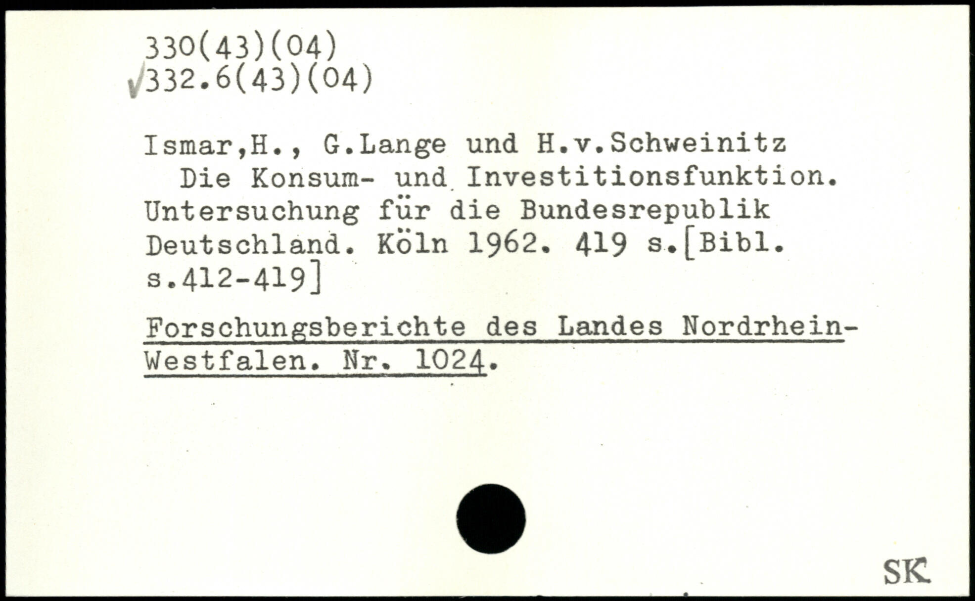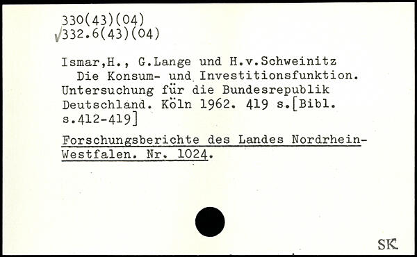 Ismar,H., G.Lange und H.v.Schweinitz Die Konsum- und Investitionsfunktion. Untersuchung für die Bundesrepublik Deutschland.