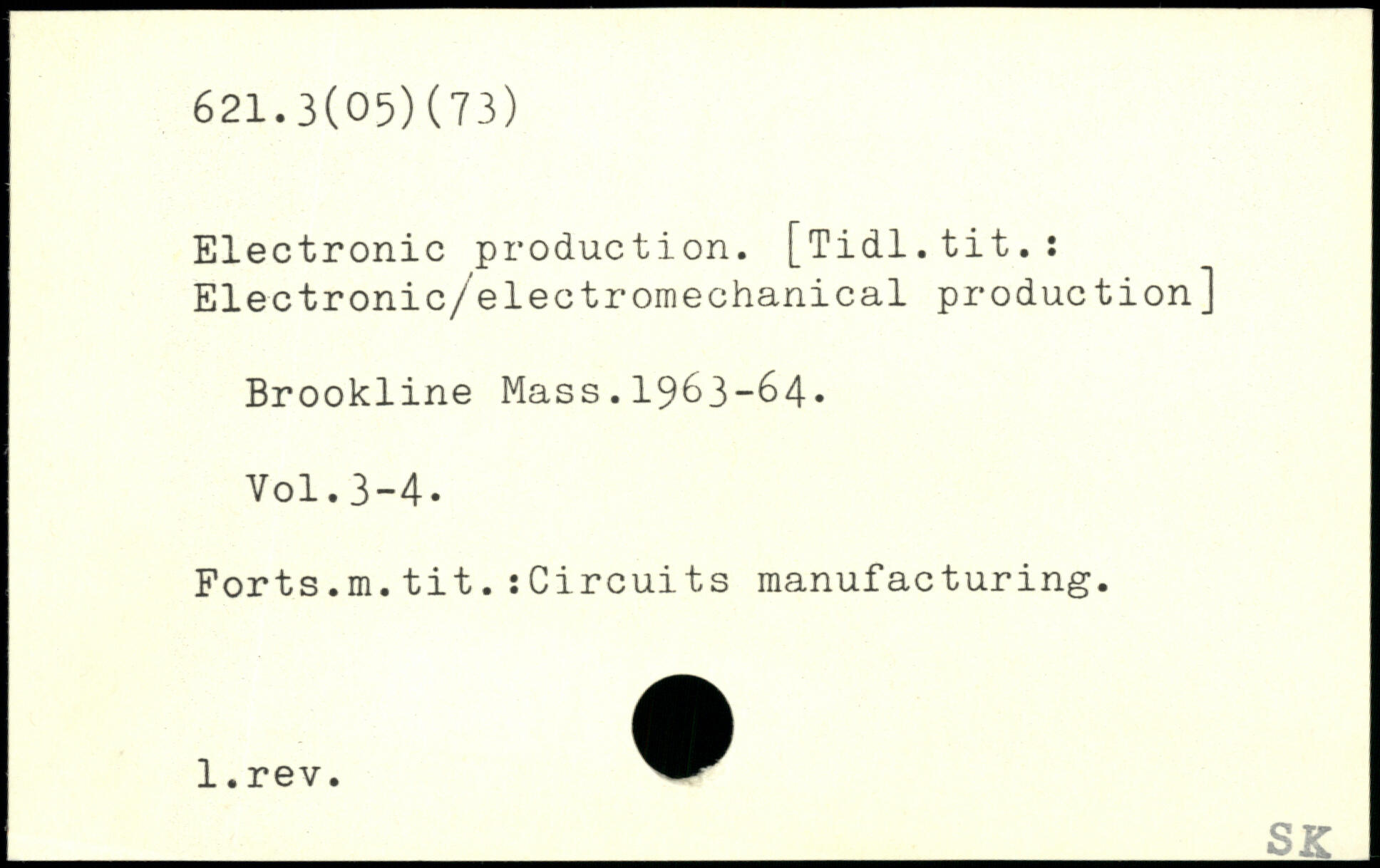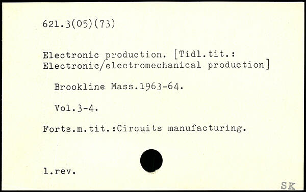 Electronic production. [Tidl.tit.: Electronic/electromechanical production] Brookline Mass.1963-64.