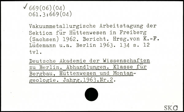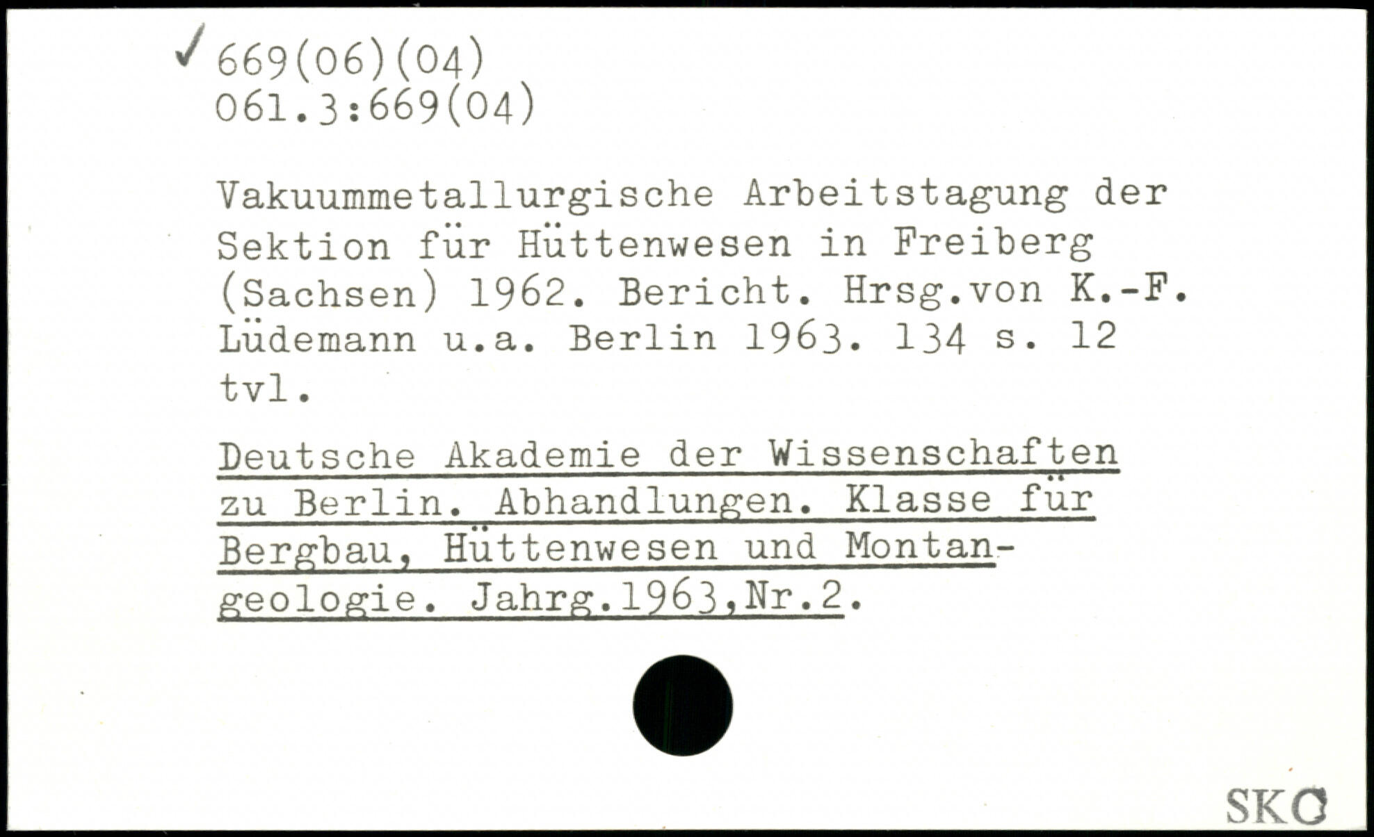 Vakuummetallurgische Arbeitstagung der Sektion für Hüttenwesen in Freiberg (Sachsen) 1962. Bericht. Hrsg.von K.-F. Ludemann u.a.