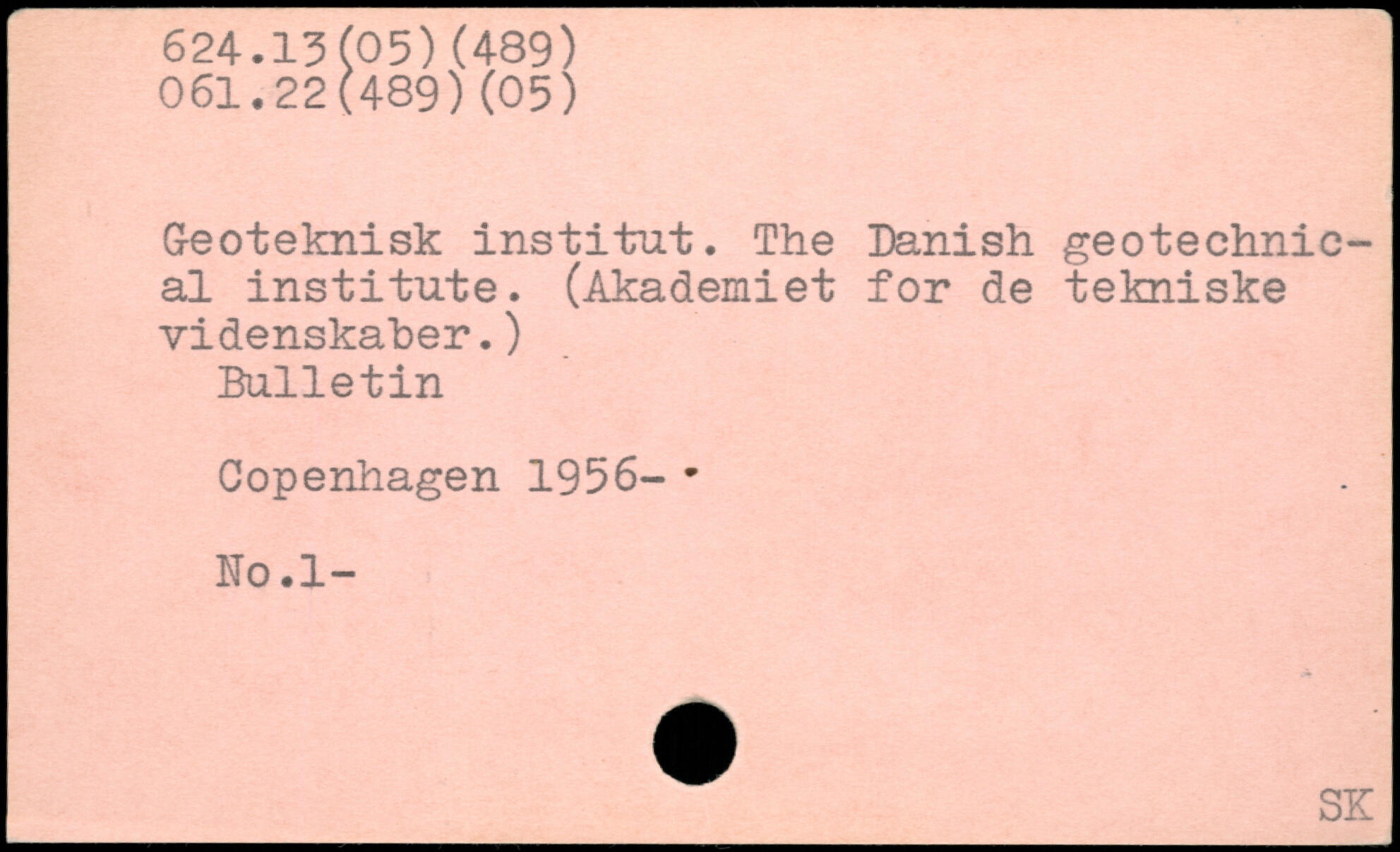 Geoteknisk institut. The Danish geotechnical institute. (Akademiet for de tekniske videnskaber.) Bulletin