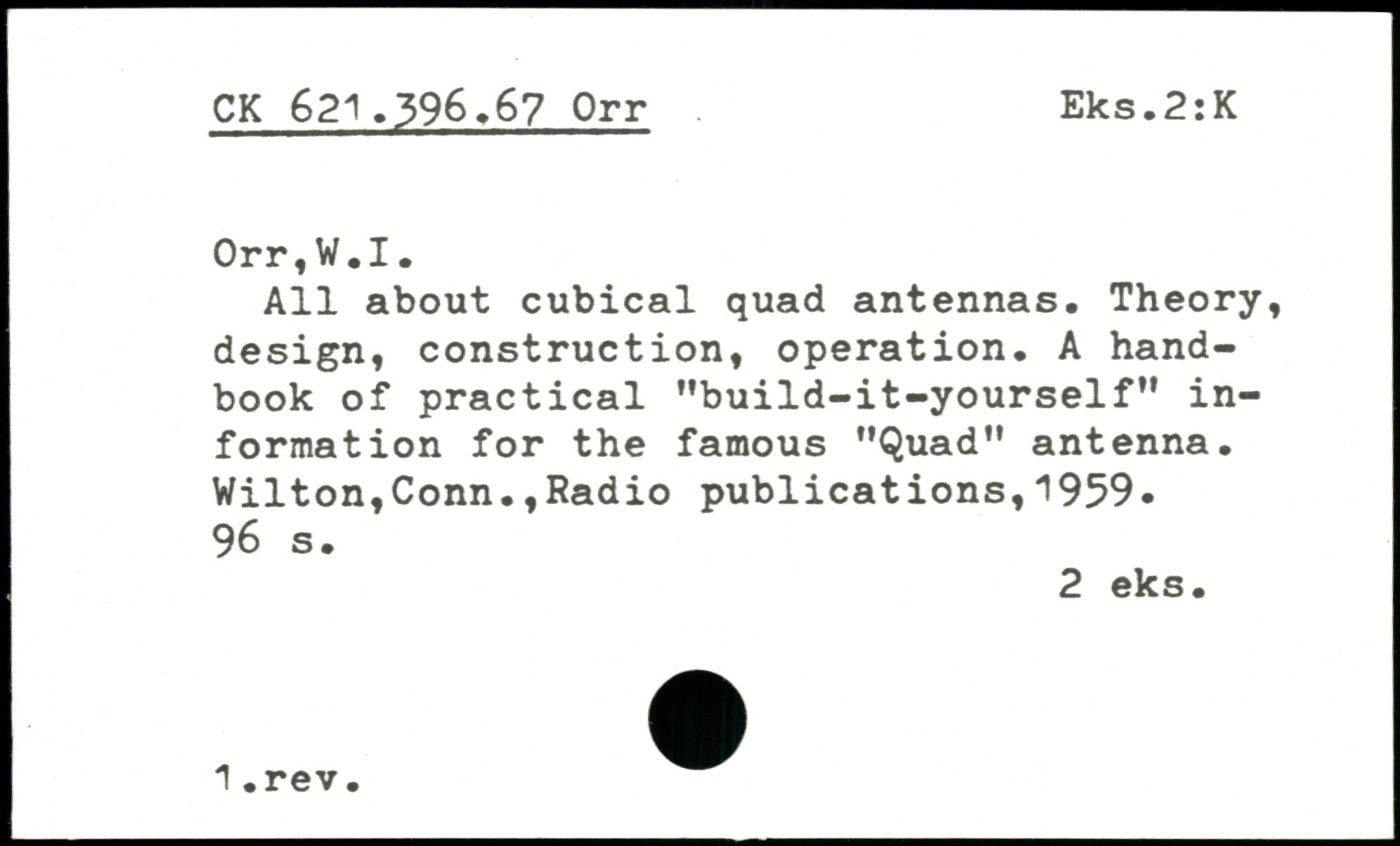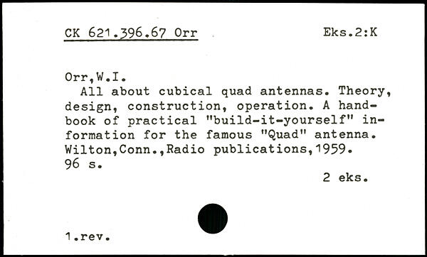 Ail about cubical quad antennas. Theory, design, construction, operation. A handbook of practical "build-it-yourself" information for the famous "Quad" antenna.