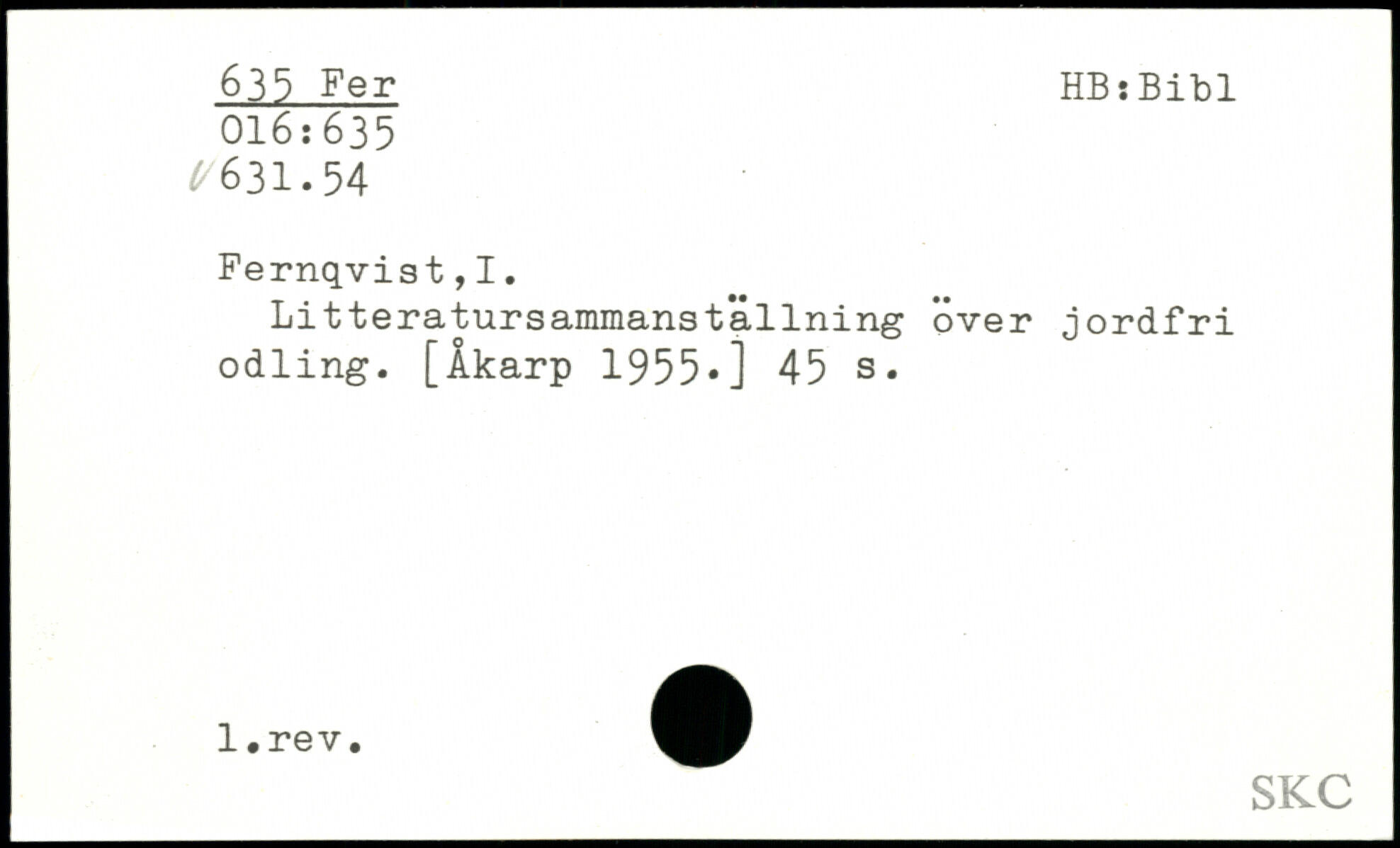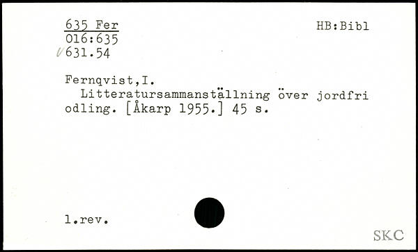 Litteratursammanställning över jordfri odling. [Åkarp 1955,]