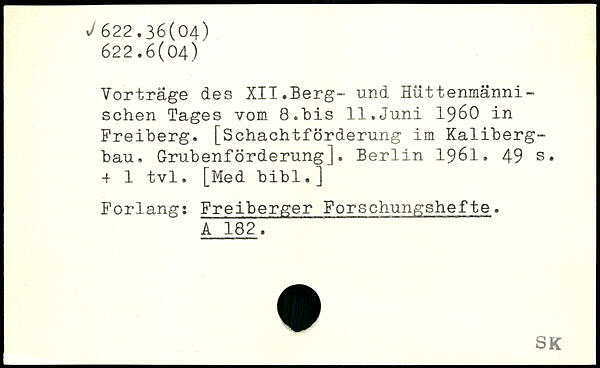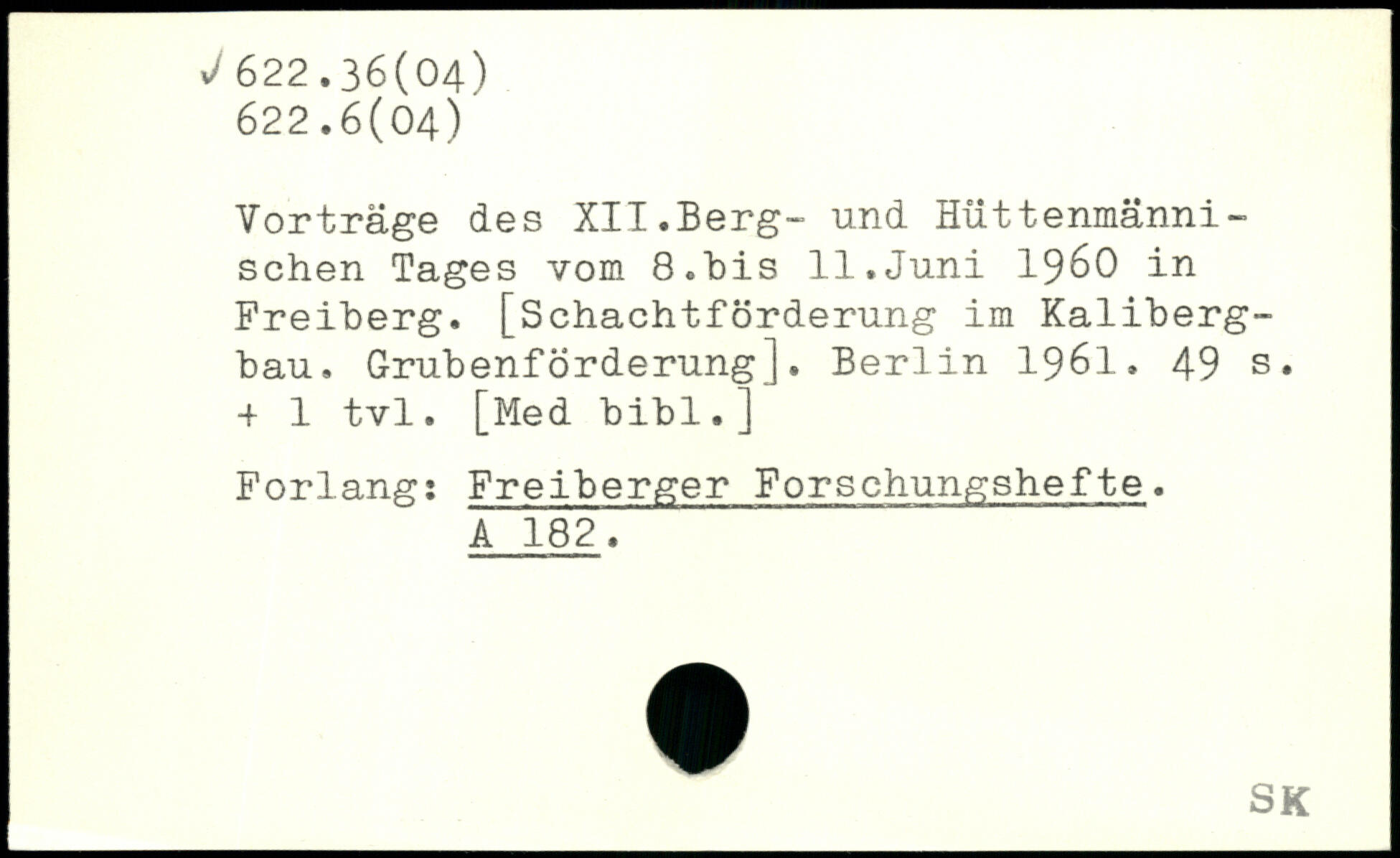 Vorträge des XII.Berg- und Hüttenmännischen Tages vom 8.Bis 11.Juni 1960 in Freiberg. [Schachtförderung im Kalibergbau. Grubenförderung].