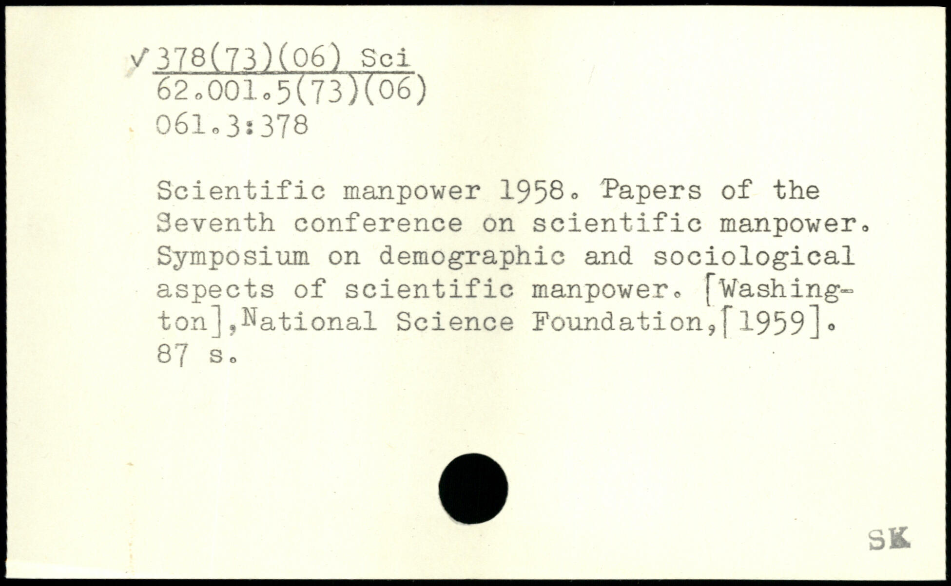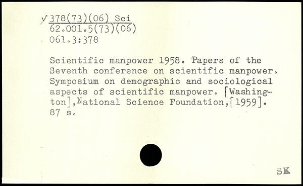 Scientific manpower 1958, Papers of the Seventh conference on scientific manpower,. Symposium on demographic and sociological aspects of scientific manpower, [Washington] ,National Science Foundation?f1959]