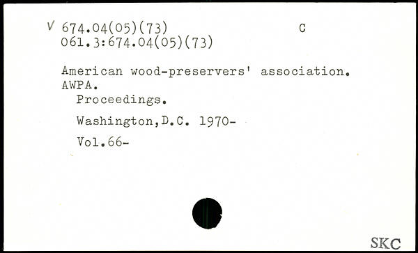 American wood-preservers’ association. AWPA. Proceedings. Washington,D. C. 1970-