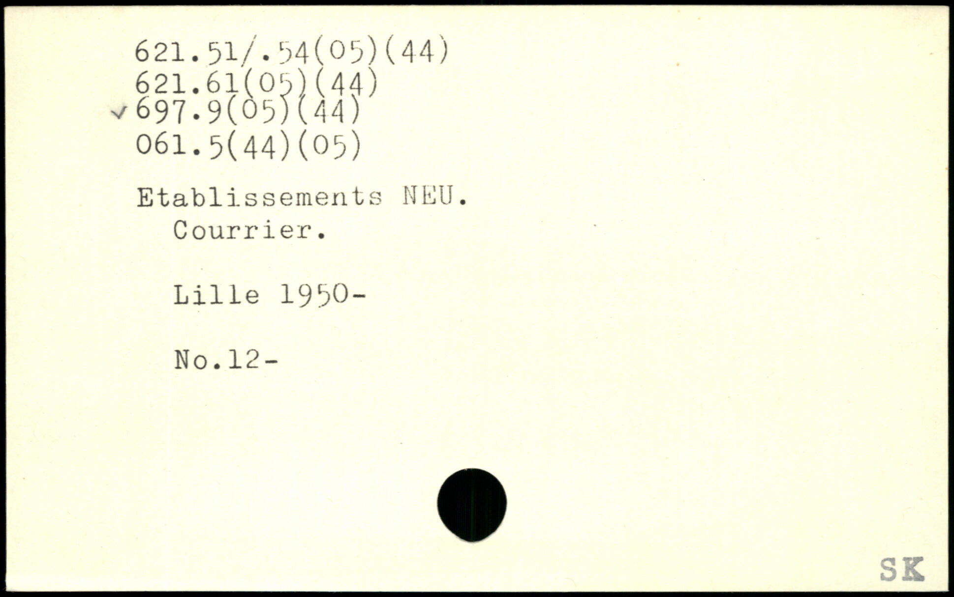 Etablissements NEU. Courrier. Lille 1990- No.12-
