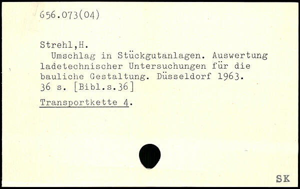 Umschlag in Stuckgutanlagen. Auswertung ladetechnischer Untersuchungen für die bauliche Gestaltung. Düsseldorf 19&3.