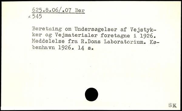 Beretning om Undersøgelser af Vejstykker og Vejmaterialer foretagne i 1926. Meddelelse fra R,Dons Laboratorium