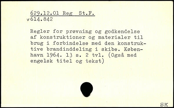 Regler for prøvning og godkendelse af konstruktioner og materialer til ■brug i forbindelse med den konstruktive brandinddeling i skibe.