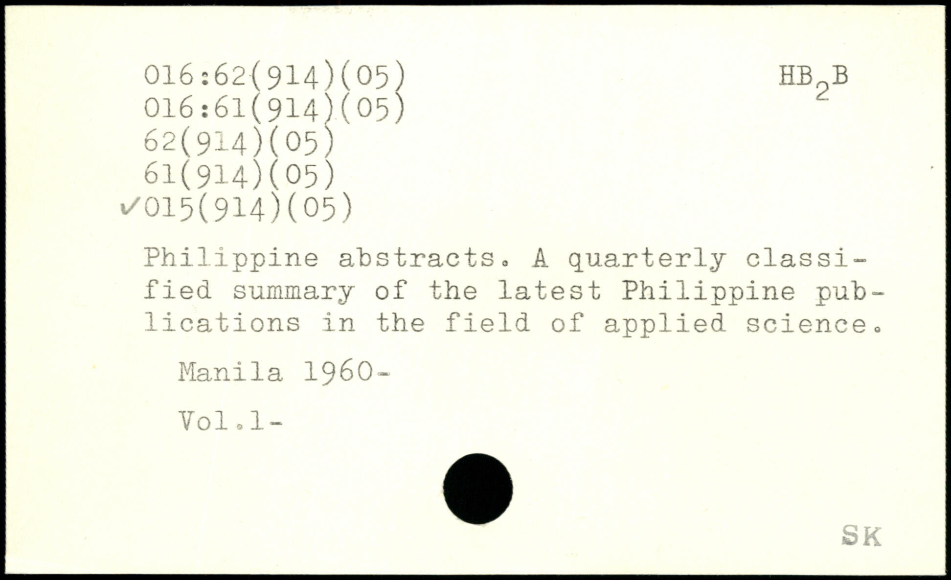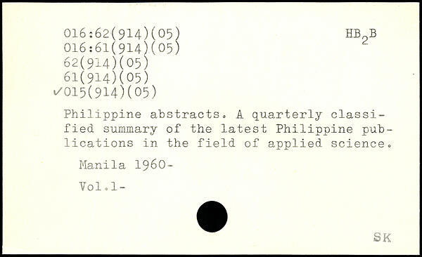 Philippine abstracts. A quarterly classified. summary of the latest Philippine publications in the field of applied science. Manila 1960- Vol.l-