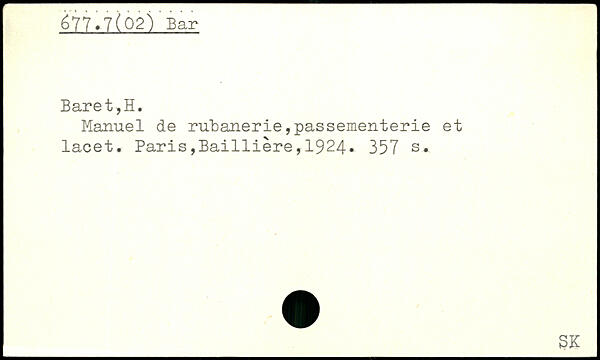 Manuel de rubanerie,passementerie et lacet. Paris,Ba1111ère,1924.