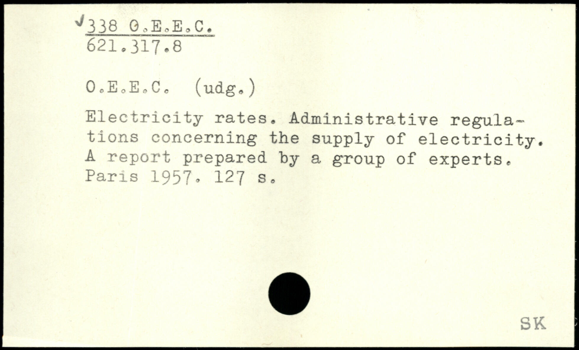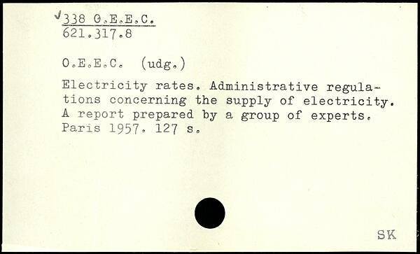 OcEoE.C, (udg,) Electricity rates. Administrative regulations concerning the supply of electricity. A report prepared by a group of experts.