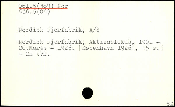 Nordisk Fjerfabrik, A/S Nordisk Fjerfabrik, iiktieselskab 1 1901 20.Marts - 1926. ^