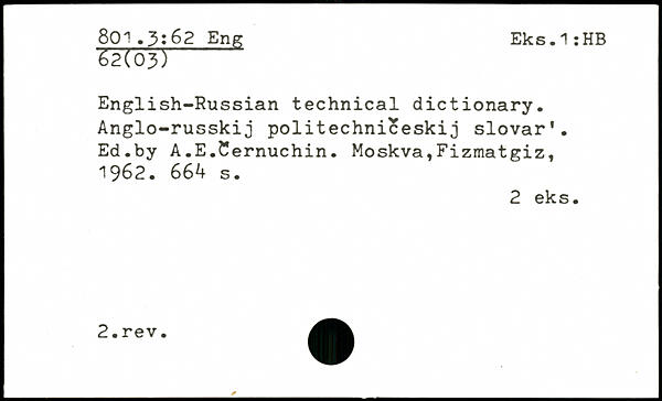 English-Russian technical dictionary. Anglo-russkij politechniceskij slovar1. Ed.by A.E.Cernuchin.