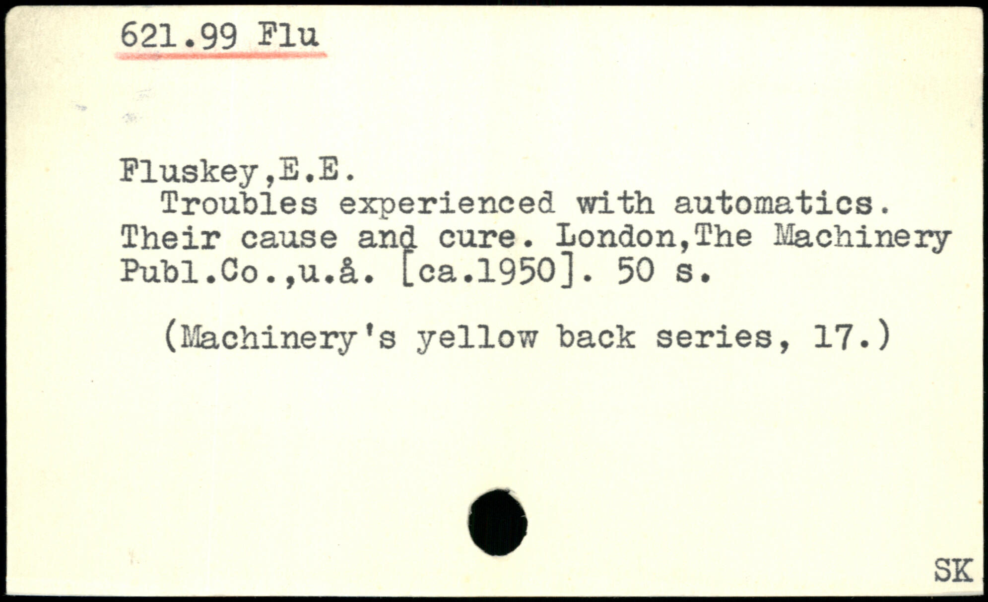 Troubles experienced with automatics. Their cause and cure. London,The Machineiy Publ.Co.,u.&. [ca.1950].