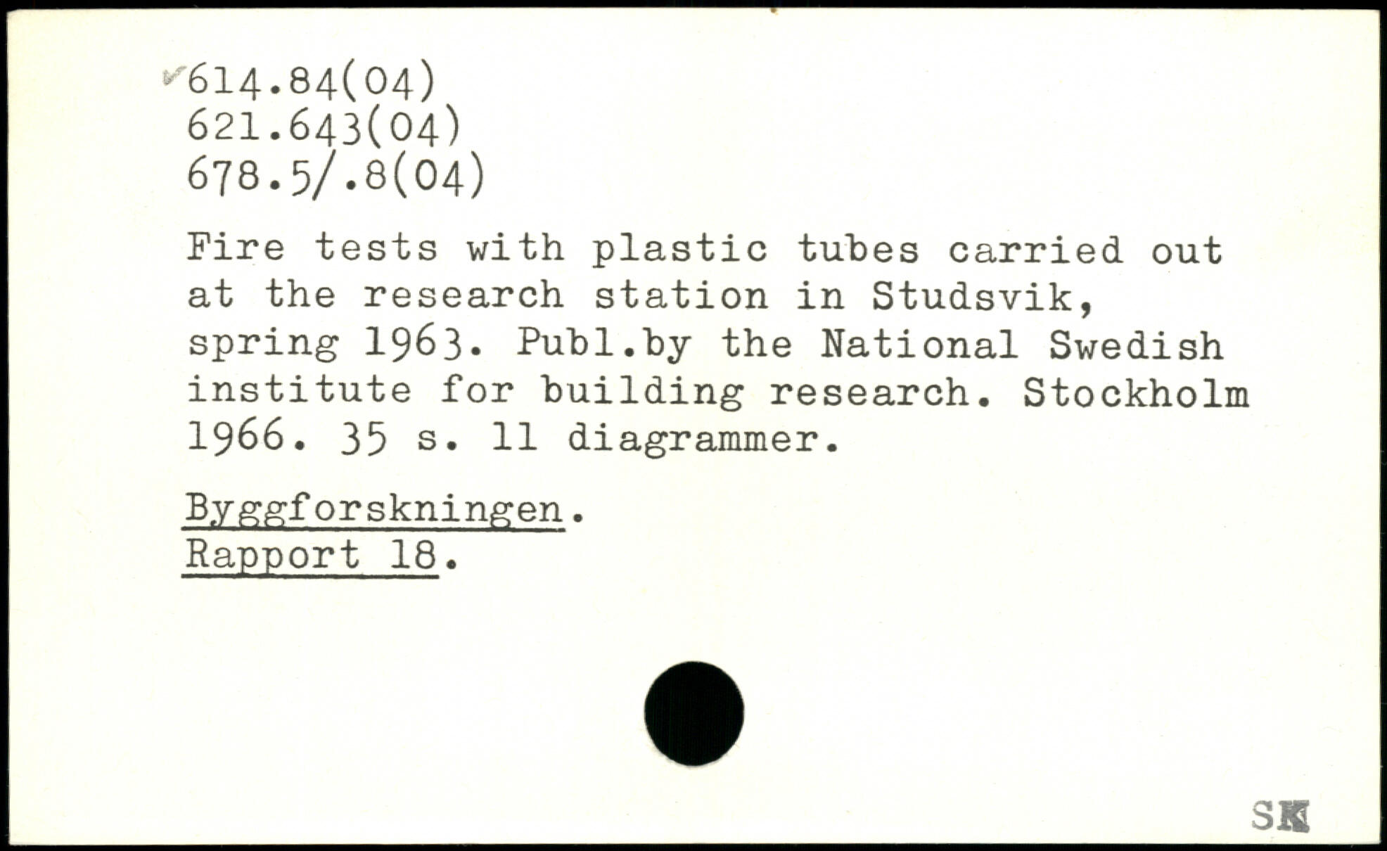 Fire tests with plastic tubes carried out at the research station in Studsvik, spring 1963.
