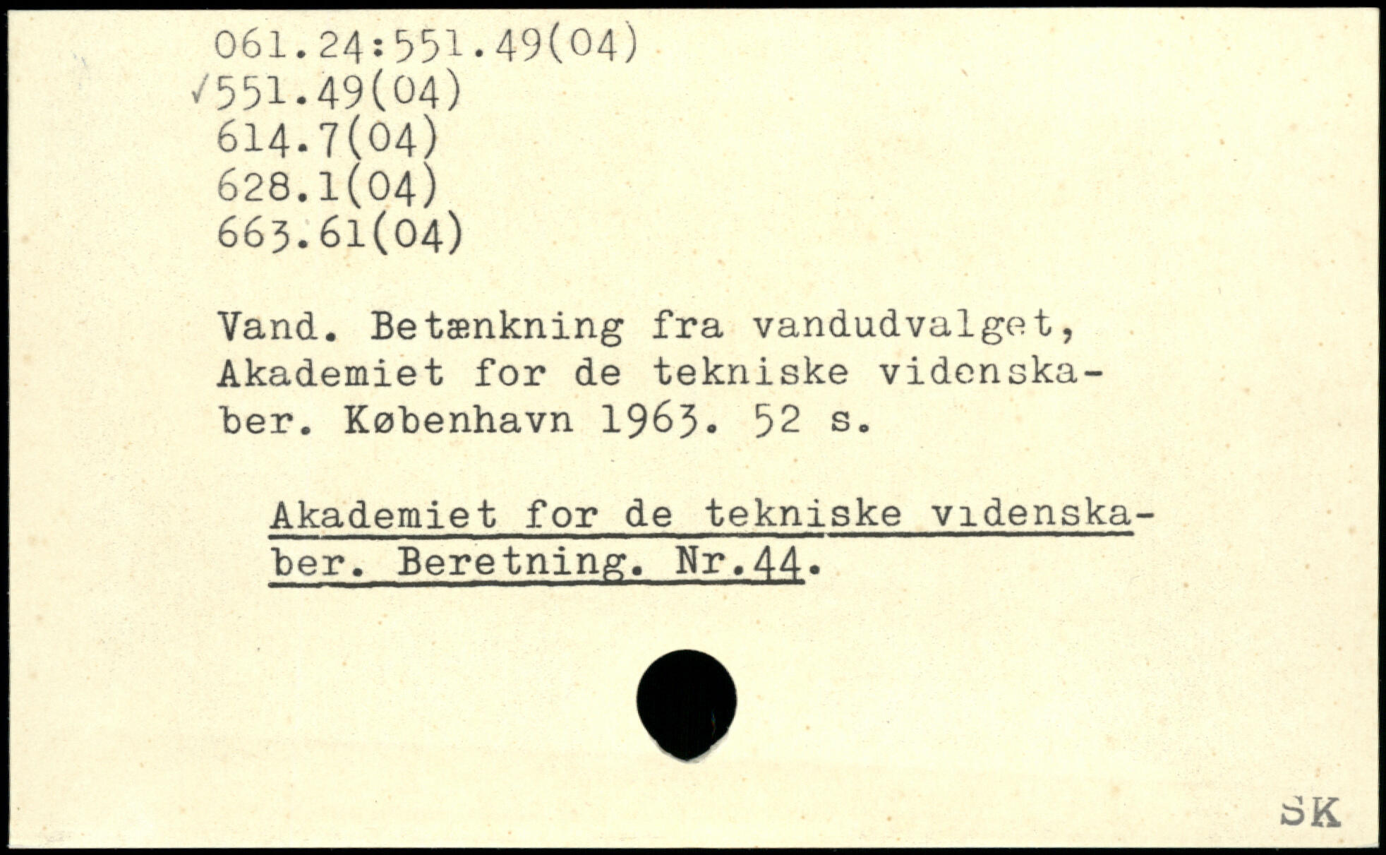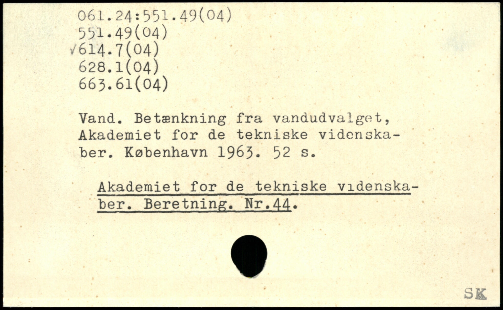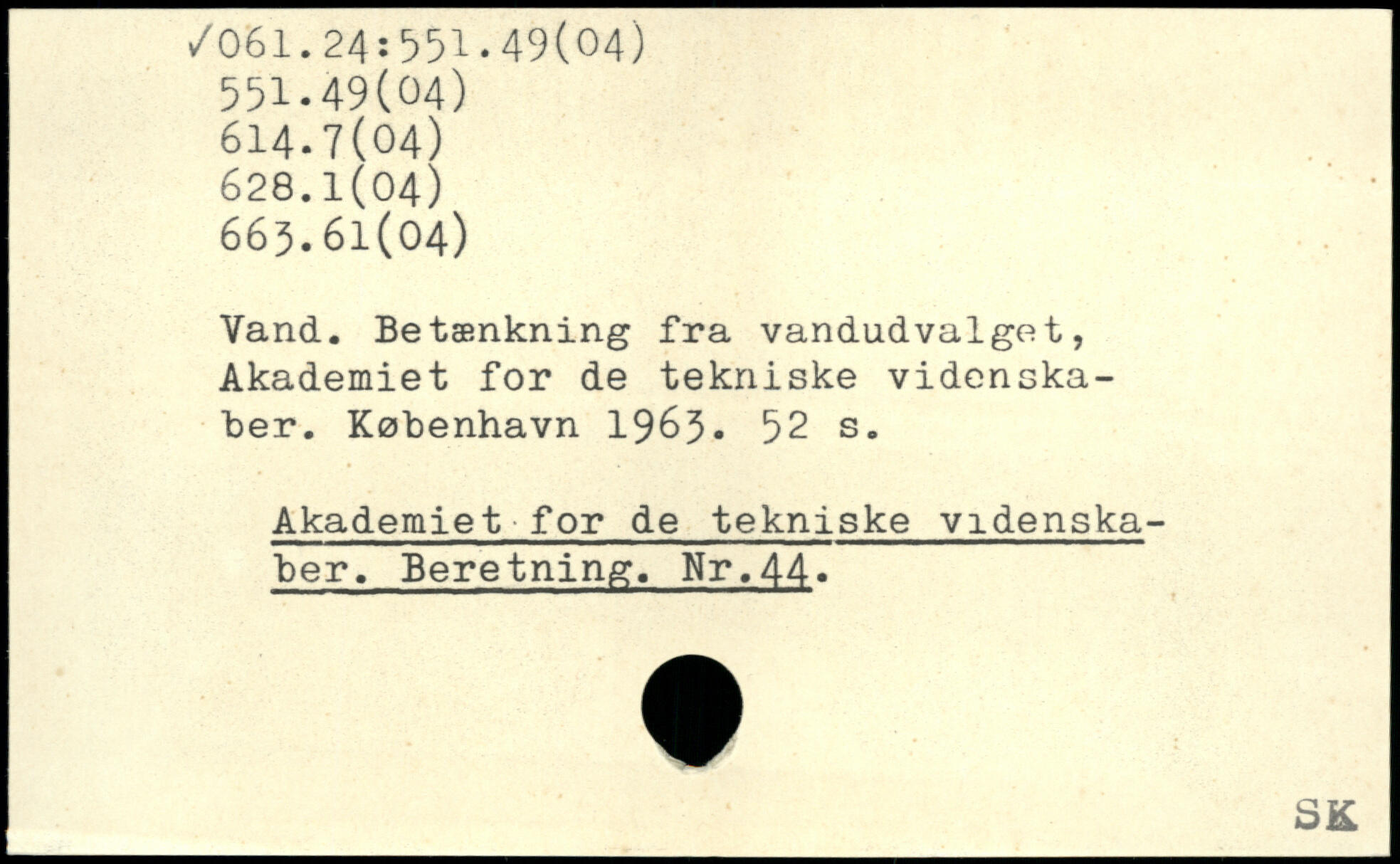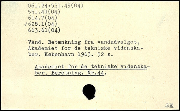 Vand. Betænkning fra vandudvalget, Akademiet for de tekniske videnskaber.