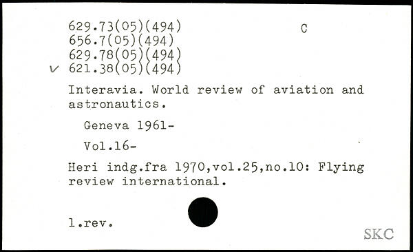 Interavia. World review of aviation and astronautics. Geneva I.96I-