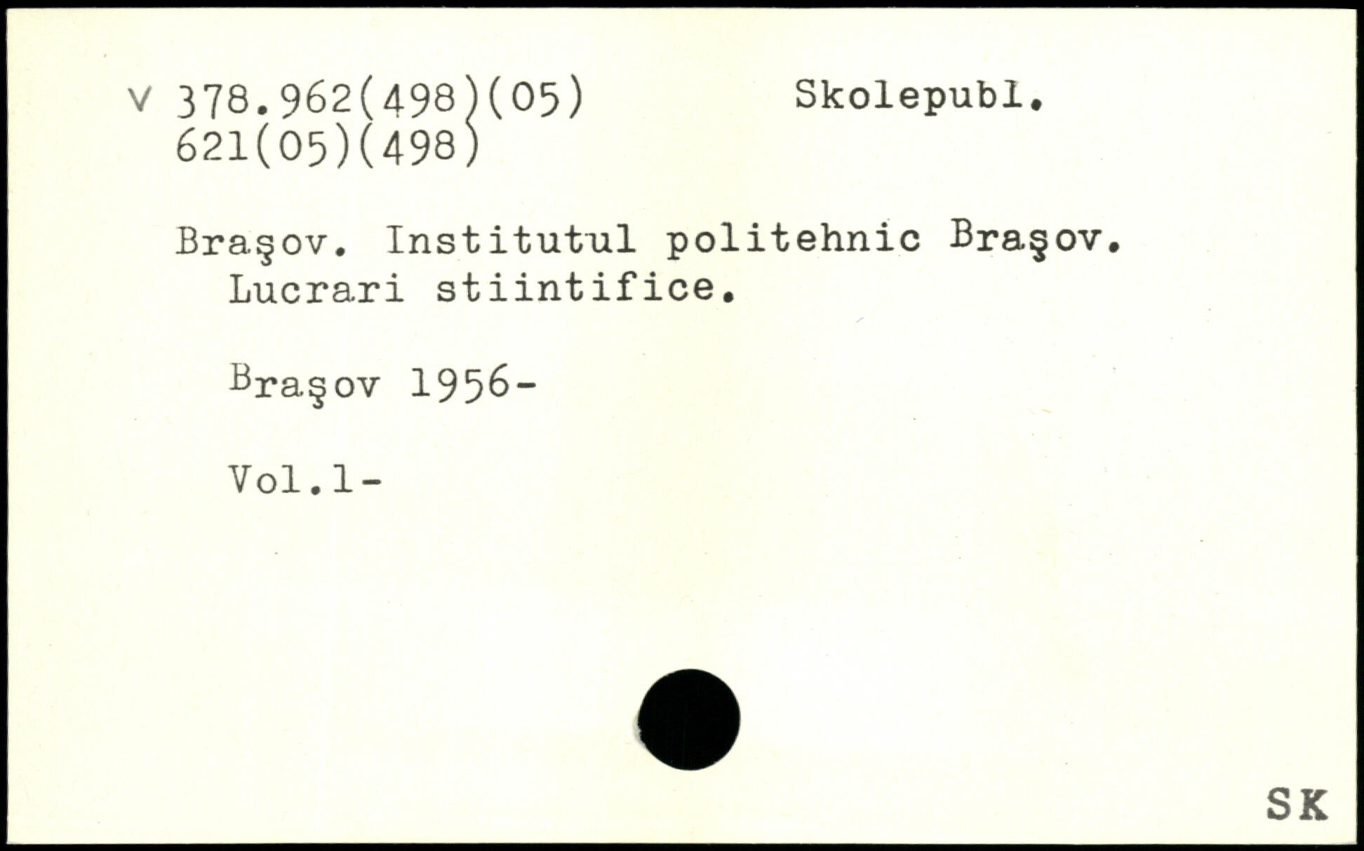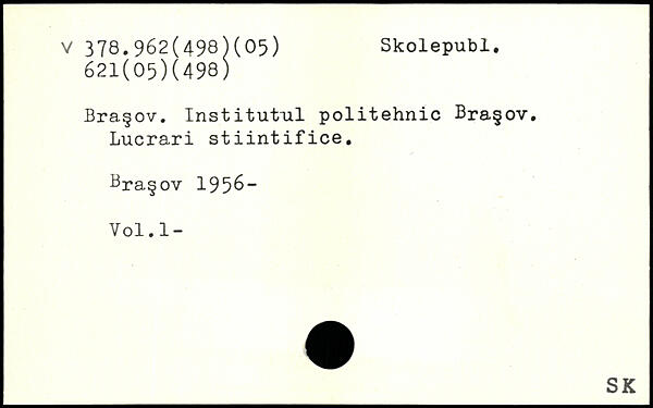 Bra§ov. Institutul politehnic Bra§ov. Lucrari stiintifice. 8ra.§ov 1958- Vol.l-