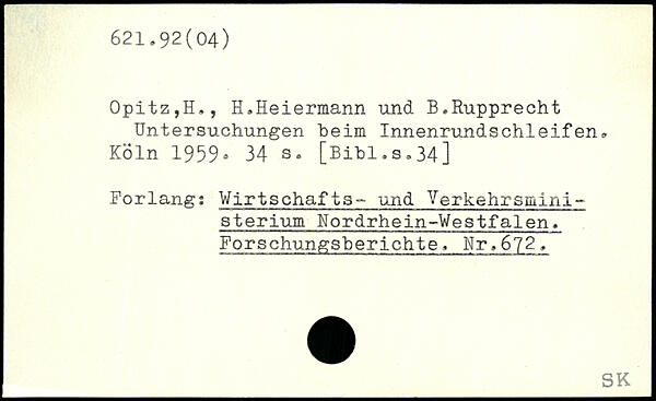 Opitz,H., H.Heiermann und B.Rupprecht Untersuchungen beim Innenrundschleifen