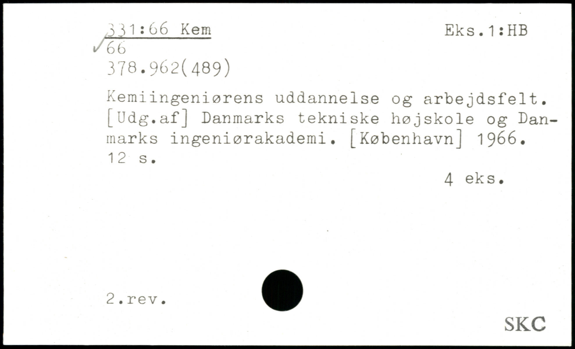 Kemiingeniørens uddannelse og arbejdsfelt. [Udg.af] Danmarks tekniske højskole og Danmarks ingeniørakademi.
