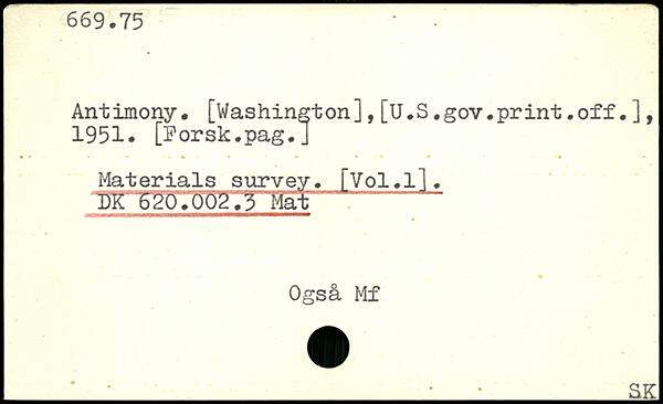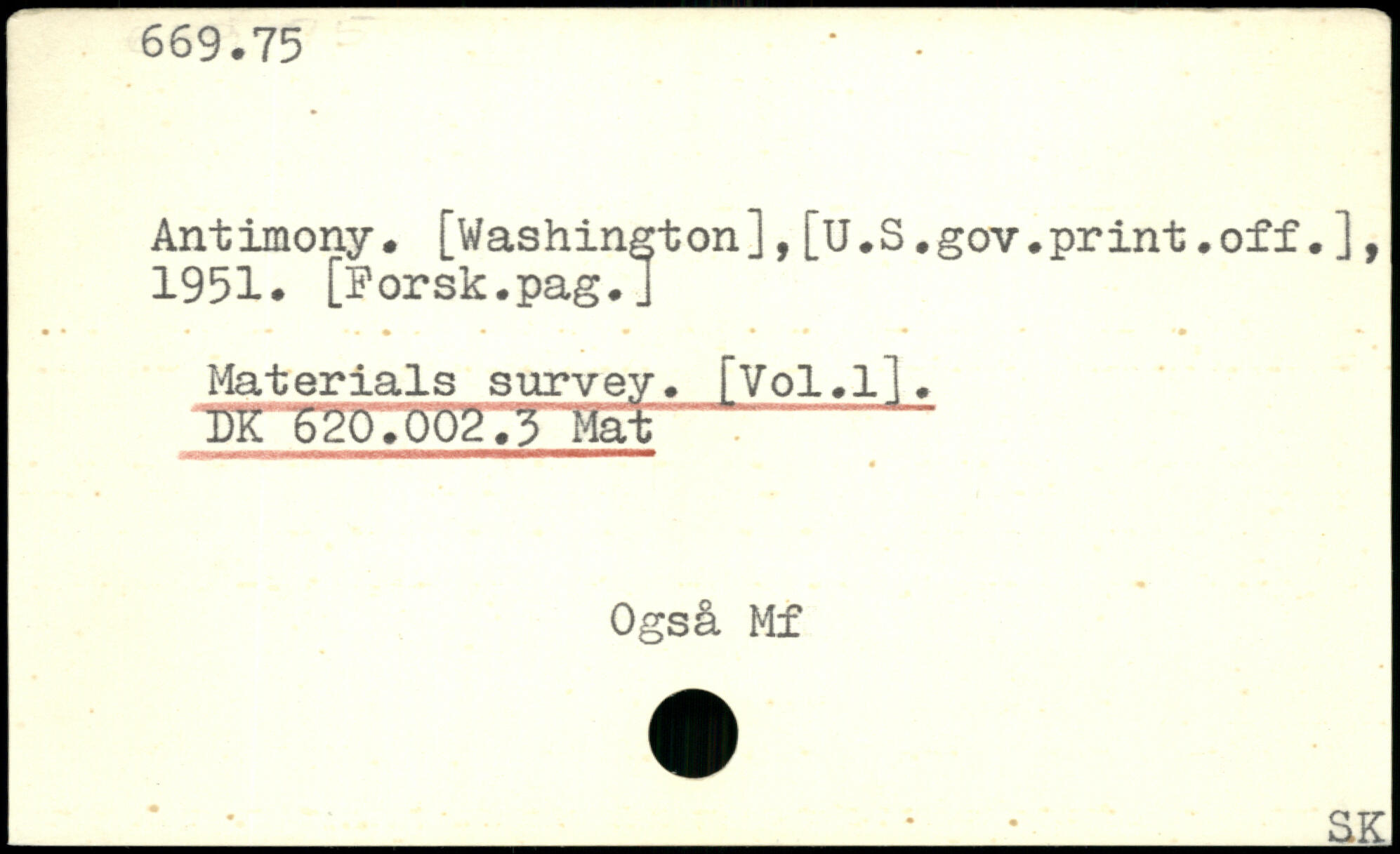 Antimony. [Washington],[U.S.gov.print.off.], 1951. [Forsk.pag.J Materials survey. rVol.ll. M.....b'gOU^.T Hat" - Ogsk Mf ____:_:_sk