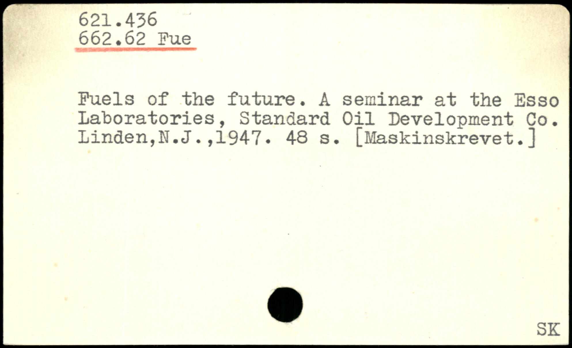 Fuels of the future. A seminar at the Esso Laboratories, Standard Oil Development Co.