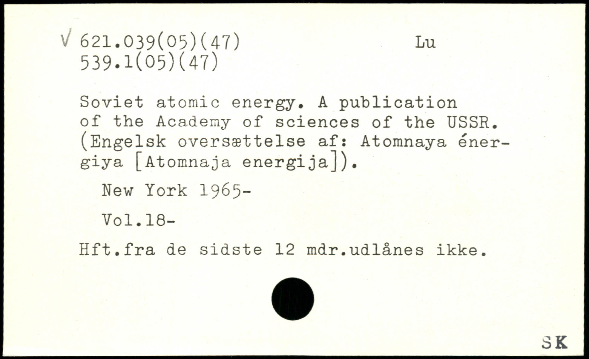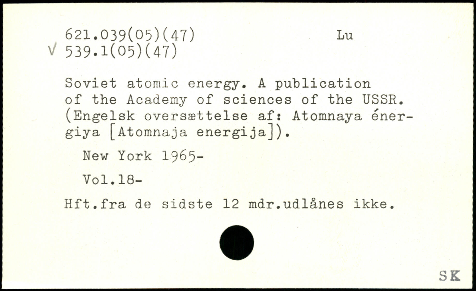 Soviet atomic energy. A publication of the Academy of sciences of the USSR. (Engelsk oversættelse af: Atomnaya éner-giya [Atomnaja energija]).